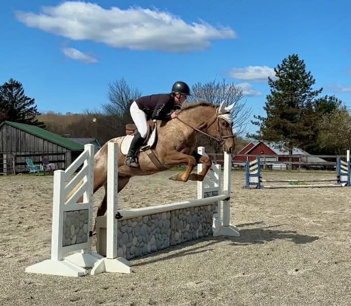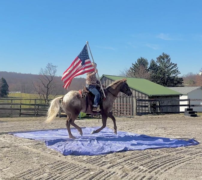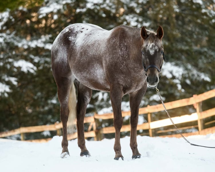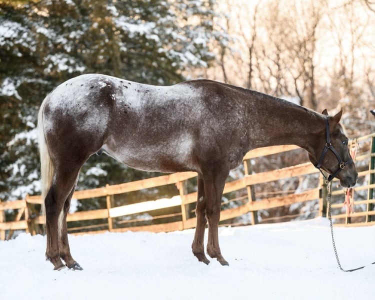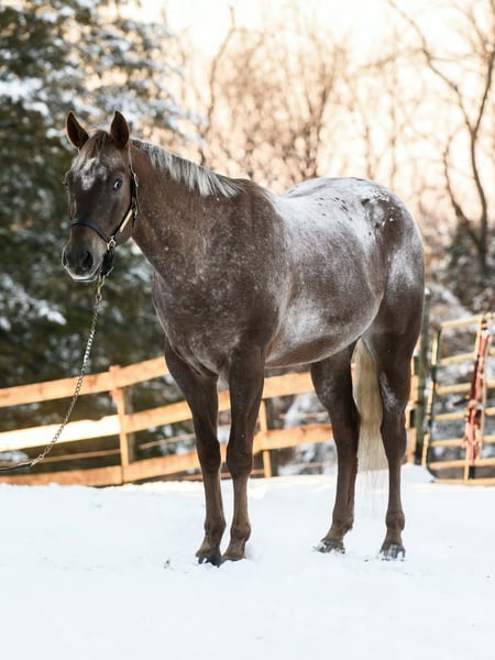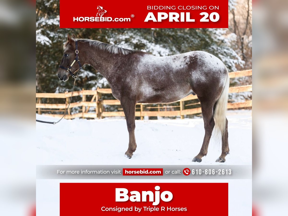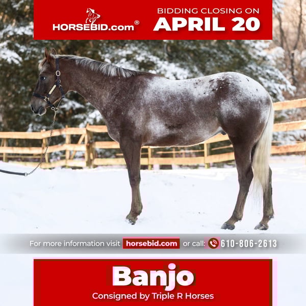 ⚜️𝐭𝐡𝐞 𝓔𝓵𝓲𝓽𝓮 𝐒𝐩𝐫𝐢𝐧𝐠 𝐂𝐥𝐚𝐬𝐬𝐢𝐜⚜️ Happening now thru MONDAY | APRIL 20th - Available EXCLUSIVELY on HorseBid's website! For more details and to register visit: www.Horsebid.com CONSIGNOR CONTACT: Triple R Horses 610-806-2613 LOCATION: New Holland, PA BREED: Appaloosa REGISTERED: Yes REGISTERED NAME: Simply Bangin COLOR: Appaloosa HEIGHT: 16 AGE: 4 GENDER: Gelding “Banjo” is a 4, coming 5yr old (May 9th), 16hh, registered Appaloosa gelding. If you like personality, being safe, having fun, and turning heads, here is your guy. This boy would be good for the whole family! Banjo is a total sweetheart, and loves people. He is guaranteed to put a smile on your face, from lovely rides to putting his head in your arms and talking a nap. Whether you are looking for a husband horse, kid horse, trail horse, show horse, Banjo will do it all! In the barn, Banjo has zero bad habits. He is a super chill around dude. He can live in or out, with others or alone, he doesn’t care. He has zero stall vices and never asks for anything. You can often find him sharing his hay with his stall neighbor through the cracks of his stall, or taking a snooze. He loves to lay out in the pasture and soak up the sun. I have turned him out with bossy mares, clingy geldings and now he is babysitting my yearling. He causes no drama and just minds his own business in the pasture. Banjo will always walk up to you in the field and he is the safe type of guy that you can trust sending your kids out to catch, or climb all over. He just likes to be involved. Banjo stands on the cross ties patiently to be groomed, tacked, bathed, loved on, you name it. He is safe with kids, beginners and dogs running around his feet, and I don’t think that he would ever, even hurt a fly. You can climb all through his legs and under him. He enjoys being loved on, and making you giggle. Banjo has great ground manners, he is gentle and laid back. He has even dabbled in showmanship and knows more than I do in that discipline. Banjo lunges well, and roundpens. He is totally gentle to work around, and he ground ties as well. I often drop him in the middle of the arena to go pick up poop and he waits for me every time. Banjo loads and trailers, and you can tie him to the trailer to get ready. He is a good boy off property, and the same horse every ride. I had Banjo through this awful winter, I was only getting to ride here and there…. He was a horse that I could trust every time to hop on and go ride with no silly business. He even did the best job at pulling my friends around on a sled!!! On the trails, Banjo will lead, follow, go out alone and in groups. He is willing and brave on the trails and goes where you ask. Into the lake, across the creek, over the logs, canter through a field then drop right back down to a quiet walk. He is safe with traffic, machinery, four wheelers, bikes, dogs, strollers, deer, turtles(yes turtles) and I have had him out shed hunting(bushwhacking looking for antlers). He is the perfect combo of drop your reins and follow or lead and enjoy the ride, or ask him to move out and have fun and he will. He will pack your husband around then take you to a hunter pace type of guy. He absolutely loves trail riding and takes good care of his rider. Banjo has been out on over night camping trips as well!! He is the ultimate all around horse! Banjo rides western, english, and bareback. He has super comfortable, uphill gaits. His gaits are adjustable and he has smooth transitions. He rides in a plain snaffle, and I have ridden him a few times with just a neck rope. He is soft in your hands and listens well to voice commands. He is more of a push style ride, but moves out when asked without a crop or spurs. He is not a horse that needs lunged before riding and doesn’t need a routine to stay sane. In the ring, Banjo will walk, jog, trot, lope, canter, and knows his leads. He is learning the fundamentals of a lead change but doesn’t have a solid change yet. He will move off of leg laterally, and ride off of your seat and legs. He is not a reactive horse and takes care of beginners as well, and will not be bothered if they accidentally press a “button”. He doesn’t get upset with off balance riders and can take a joke. Banjo will stop with “whoa”, back up, pivot, neck rein, and is learning to side pass. You can stop fast with whoa or bring him down slowly through the gaits. Banjo will ride collected, on the buckle, and will put his head where you ask him. Lower his head, or leave it up for balance. Banjo has been lightly introduced to jumping. I popped him over a few small cross rails this winter, then didn’t ask him to jump again until recently as he has only been four years old his whole time with me. He has always been honest and brave to fences and tries his best. Banjo is a very intelligent horse that likes to please his rider. He enjoys learning and being rewarded. Banjo did show a little when he was younger in some western classes. This boy has potential and the looks to head into absolutely any discipline. He is currently set up as a versatile horse, ready to go in the direction that you want to pursue. Banjo is an easy keeper, with a simple diet and no maintenance. He doesn’t have any special requirements. He has been barefoot his whole life, has very solid feet, and clean legs. He was started slowly and correctly. Banjo is great for the vet and farrier. Banjo has been an amazing horse to have around. He is the barn clown, and will take lead ropes off of his door, make funny faces, and just knows how to make your day better. He has a very calming and kind personality, easy to bond with. He is the horse that you can go sit with or hug if you are having a bad day. Not only is he honest and sweet, he is absolutely beautiful!!!! Banjo is the all around, family safe, versatile horse that everyone is looking for. I am very thankful for my time with 