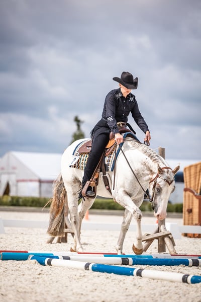 Met pijn in het hart bied ik "Olaf" te koop aan, een vijfjarige Appaloosa ruin in de few spot kleur. Olaf is ongeveer 1,62 m hoog en stevig gebouwd, waardoor hij ook grotere ruiters aankan. Hij heeft één blauw oog en één donker oog, wat hem uniek maakt. Sinds hij wean was, is hij in mijn bezit. In 2024 heb ik hem succesvol voorgesteld op de EWU Landelijke Kampioenschappen, waar hij werd uitgeroepen tot Beste Jonge Paard Basis en Trail, en Landesmeister Junior Pleasure en Junior Trail. Helaas heb ik, uit eerlijkheid, moeten vaststellen dat hij geen plezier heeft in training met wedstrijdambities. Daarom zoek ik uitsluitend een levensplek voor hem als recreatief paard. Hij staat in Oberhof en wordt daar veel in het terrein gereden. Of het nu op uitgestrekte velden is of door het dorp – hij is altijd braaf. Ook onder wat meer ervaren kinderen loopt hij braaf in alle drie de basisgangen. Vanwege zijn jonge leeftijd is hij echter alleen geschikt voor ambitieuze ruiters of herintreders. Hij is geen beginnerspaard. Olaf is zeer sociaal en kan in een gemengde kudde staan. Omdat hij leopardgenetisch drager is, is hij nachtblind. Dit moet je in een paddockstaling rekening mee houden. Hij rijdt probleemloos in de trailer en is bij de hoefsmid en dierenarts helemaal probleemloos. In omgang is hij een ware schat en wil altijd alles goed doen. Olaf is 5-panel N/N, maar drager van het MiM-gen en wordt daarom onder de marktprijs aangeboden. Hij vertoont momenteel geen symptomen. Bij interesse kan ik graag actuele video’s sturen van buitenritten en op de longe. Olaf heeft papieren van het Aphc en een paspoort van het AphcG. Plaats gaat voor prijs!
