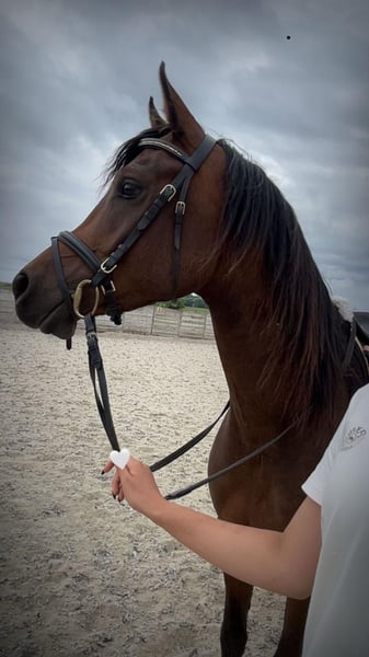 Nuestro potro árabe de 4 años está en venta porque es demasiado pequeño para nosotros. Actualmente mide aproximadamente 1.50 m y yo tengo 1.83 m. En los últimos seis meses, lo hemos domado con silla y brida. Es sociable con personas y otros caballos en el establo. Cuando ve algo nuevo, es curioso y se acerca. Le encanta montar al aire libre y también pasear a mano con bicicleta. Registro de raza árabe, su padre es G. Basgier. SE VENDÉ RÁPIDAMENTE
