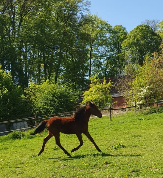 Young Azteca Stallion with Potential Seeks Loving Hands I am reluctantly selling my promising brown Azteca yearling stallion. This handsome young horse is a successful blend of PRE and Quarter Horse, which not only gives him a great appearance but also a lot of potential for the future. His good, expansive movements highlight his quality. He is growing up in a species-appropriate manner and is well mineralized. We see him as a talented partner for ambitious riders in working equitation or the upper leisure sector. Pepe is a little horse that quickly wins hearts with his curiosity and charming nature. If you are looking for a special young horse that wants to be nurtured with love and know-how, please feel free to contact me.