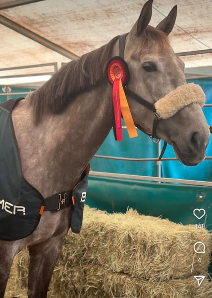 For sale is our Baden-Württemberg mare with exceptional quality and the ideal foundation for higher-level competition. The mare has already been competed up to class M, consistently motivated, honest, and eager to jump. In everyday handling, she is very people-oriented and child-friendly. She is loading, farrier, and grooming friendly, and remains calm and relaxed at competitions or in unfamiliar environments. Her pedigree, with Magnus Romeo × Carolus II, leaves nothing to be desired: her sire, Magnus Romeo, successfully competed in the World Cup under Hans-Dieter Dreher, and her dam line also guarantees talent, technique, and willingness to perform. This mare is suitable for both ambitious amateurs and further competitive riding. She possesses excellent qualities for higher-level tasks. Further information, videos, and trial rides are available upon request.