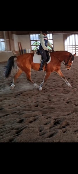 Verkaufe Baden-Württembergischer Wallach – Perfekt für Springbegeisterte! Zum Verkauf steht ein hübscher brauner Baden Württemberger Wallach, geboren im Jahr 2021. Mit einem Stockmaß von 162 cm bietet er die ideale Größe für ambitionierte Reiter. Sein vielseitiges Springtalent macht ihn zum idealen Partner für den Turnierreitsport oder für ambitionierte Freizeitreiter. Der junge Wallach ist gut ausgebildet, aufmerksam und lernwillig. Er zeigt bereits vielversprechende Springfähigkeiten und hat ein freundliches, offenes Wesen. Aufgrund seines Alters ist er perfekt geeignet für Reiter, die einen jungen, entwicklungsfähigen Partner suchen. Bei Interesse oder für weitere Informationen stehe ich gerne zur Verfügung!