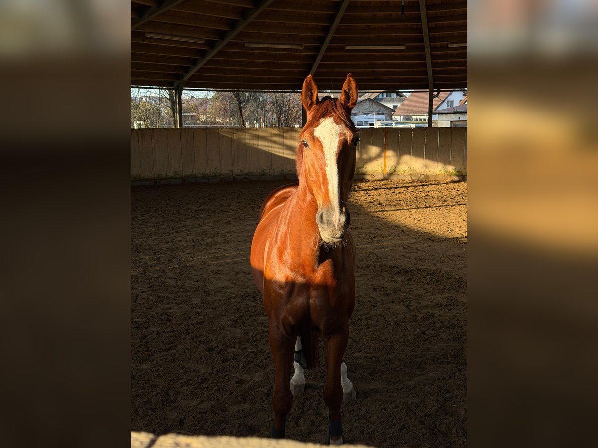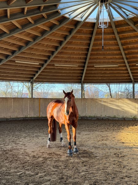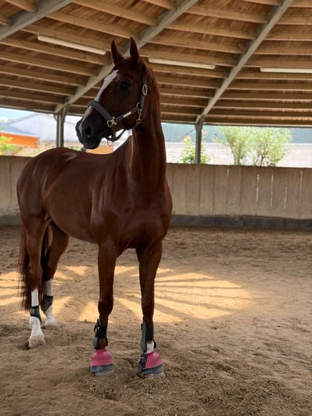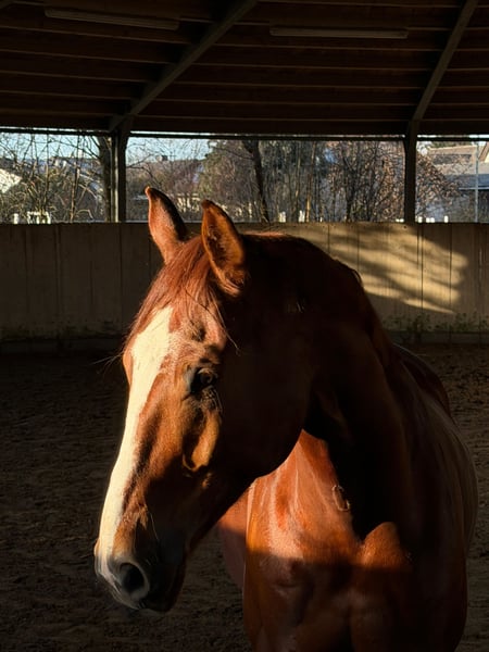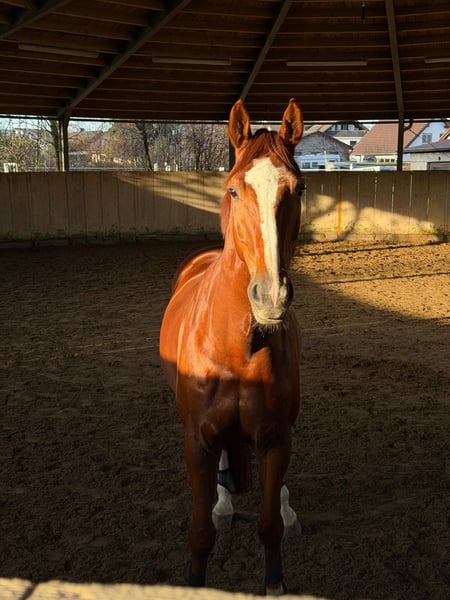 Zazu ist ein 2017 geborener 170cm großer Fuchswallach mit sehr viel Herz. Er läuft mit viel freude durchs Viereck, macht gerne einen kleinen Sprung, ist motiviert bei der Bodenarbeit und lieb im Gelände. Er kennt Traktoren, Laute Geräusche, Hunde, Kinder, Fahrräder, Schmied, Führanlage etc.. Aktuell wird er von einer Anfängerin mit ausbindern mit geritten, hier zeigt er sich stets von seiner besten Seite. Zazu liebt Spaziergänge, Schmuseeinheiten und liebt es einfach auf dem Hof zu stehen und bei allem dabei zu sein. Er ist verträglich mit anderen Pferden daher ist ein Offenstall auch möglich. Für weitere Fragen, Videos etc gerne einfach melden.