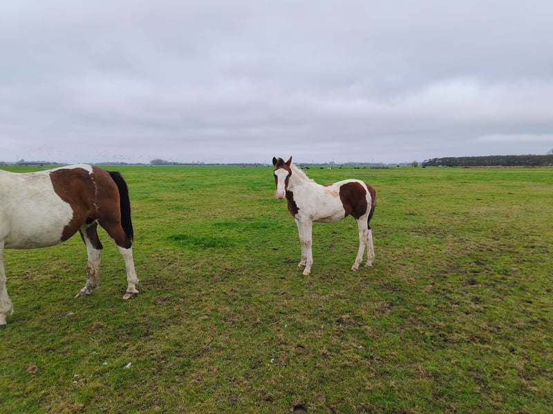 Dieser wunderschöne Barockpinto-Hengst möchte Ihr Herz erobern. Er ist dreifarbig! Braun mit schwarzen Scheckenabzeichen und wird im Frühjahr zwei Jahre alt. Seine erwartete Endstockmass beträgt ca. 1,60 m. Er ist athletisch gebaut und gleichzeitig ein wunderschönes, kräftiges Pferd. Er ist neugierig und stammt von zwei sehr liebenswerten Eltern ab (Mutter: Paint Pinto, Vater: Barockpinto). Auf den Fotos sehen Sie ihn jetzt und als Fohlen. Über uns: Wir sind das Gestüt Vrije Paarden und züchten schon seit über 40 Jahren Barockpintos, Friesen und Quarter Horses. Unsere Pferde werden so aufgezogen, wie man es sich für jedes Pferd wünscht: in einem geschlossenen Familiensystem und im Einklang mit ihrer Umwelt. Unsere Pferde leben das ganze Jahr über in großen Herden, was zu ihrem ruhigen und ausgeglichenen Wesen beiträgt. Sie können jederzeit mehrere schöne Pferde direkt von unserem Familiengestüt aus bei uns besichtigen. Unsere Pferde sind noch komplett roh, Sie können das Pferd alles genau so lernen wie Sie das möchten. Die Pferde sind gechipt und haben einen Pferdepass. Wir sprechen Deutsch, Niederländisch, Englisch und Friesisch. Sie können uns gerne nach Vereinbarung besuchen, damit wir uns ausreichend Zeit für Sie nehmen können. Der Kaffee steht bereit. Wir freuen uns darauf, Ihnen bei der Suche nach Ihrem zukünftigen Traumpferd behilflich zu sein! Bei Interesse rufen Sie uns an oder schreiben Sie uns eine WhatsApp-Nachricht. Erfüllen Sie sich Ihren Traum bei Familiengestüt Vrijepaarden!