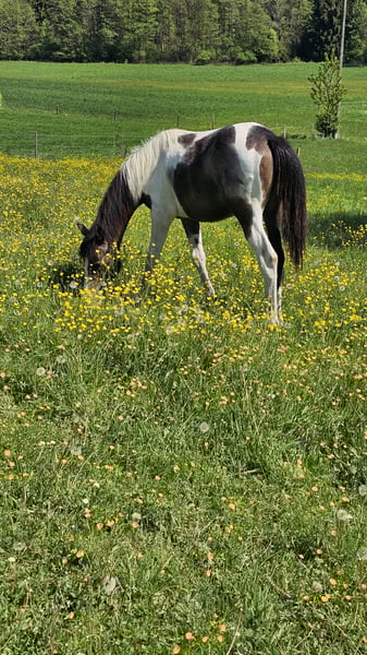 Diese wunderschöne Stute hört auf die Name Oshana und ist ein riesen schmuse Maus. Sie liebt kuscheln und kommt mit andere Pferden super klar. Sie ist allerdings ein Jungpferd die Ausbildung braucht und da sehr gern ihr Grenzen testet. Sie ist sehr Menschen bezogen und wie oben erwähnt liebt sie auch die Nähe von Menschen und kuscheln. Aber besonders beim Ausbildung mag sie momentan gern ihr Kraft als "teenager" testen. Definitiv ist sie ein Pferd für erfahrene Besitzer. Sie steht im Offenstall und verträgt sich gut mit alle andere Pferden. Ihr werden gerade die Basics beigebracht und trainiert aber sie muss weiter trainiert werden. Allerdings muss ich mich leider aus finanziellen und gesundheitlichen gründen schweren Herzens von ihr trennen. Ich hoffe ich finde die richtige zuhause für sie. Bei bedarf kann auch die Ausrüstung wie Halfter & Stricke mitgenommen werden.