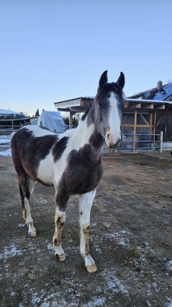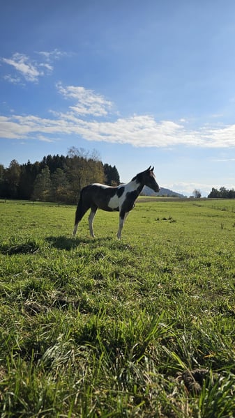 Oshana is a 2-year-old Baroque Pinto mare. She has a valid horse passport and is in good health. She has already been lunged and introduced to basic groundwork. She walks nicely on a lead, is familiar with the farrier, and is regularly trimmed and cleaned. She stands well when being brushed. The only thing is that she can be a bit fussy and whiny when it comes to having her hooves picked out. She is a huge cuddle bug and loves affection, but she is also increasingly enjoying her work. Unfortunately, I need to sell her due to financial reasons. Equipment can be included upon request.