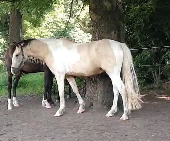 Verkaufe Barockpinto Wallach – Perfekt für Freizeit! Zum Verkauf steht ein wunderschöner Barockpinto-Wallach, geboren im Jahr 2020. Dieser beeindruckende Wallach besticht durch sein elegantes Buckskin-Fell und sein praktisches Stockmaß von 158 cm. Er ist bestens geeignet für den Freizeitbereich und begeistert durch sein angenehmes Wesen sowie seine ausgeglichene Art. Der Wallach ist gesund, regelmäßig geimpft. Er zeigt sich im Umgang freundlich, gelassen. Ideal für Reiter, die ein zuverlässiges und charmantes Pferd suchen, das sowohl im Gelände als auch in der Halle Freude bereitet. Aufgrund des Alters und Ausbildungsstand verkaufe ich ihn als Angeritten für diesen Preis. Durch sein alter ist er nichts für Anfänger oder schwache Reiter. Ich verkaufe ihn WG absoluten Zeitmangel wo ich ihn nicht gerecht werden kann. Daher muss er auch wieder angeschoben bzw. weiter ausgebildet werden und ich sehe hier von großartigen Probereiten ab. Zur Zeit ist er nur ca 1x die Woche mit einem Mädel im Gelände unterwegs. Bei wirklichem Interesse und für weitere Informationen stehe ich gerne zur Verfügung. Vereinbaren Sie gerne einen Termin für eine Besichtigung! Ich freue mich auf Ihre Anfrage!