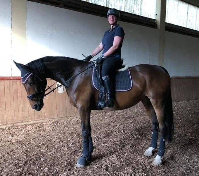 Due to retirement from horsekeeping for age-related reasons, I am offering my nearly 13-year-old mare, Taqueena, for sale. Standing at 17.2 hands, she is a very impressive horse. For the past three years, she has been kept at our farm with a gelding in box stall housing, with daily turnout on pasture or paddock. Prior to that, she was in an open stall with about 30 other horses. She is accustomed to both management styles but probably feels most comfortable with more horses around her. Her previous owner bought her as a foal and trained her. You can find posts from that time under the name Taqueena Royal on Facebook, Instagram, or simply via Google. This Bavarian Warmblood from the Wimmer Breeding Farm has a good pedigree and is in excellent health. We have never needed a veterinarian in the three years we've had her, except for vaccinations. The dentist was also here for a check-up this spring: no issues. She has always been barefoot. She is well-behaved with vets, dentists, and the farrier. Taqueena is very affectionate and people-oriented but requires routine, a calm, consistent handling, and patience. She is eager to learn and enthusiastic about groundwork and dressage. We have lunged her for small children, and two beginner ladies take weekly riding lessons on her—they are completely smitten. She is light to ride and very comfortable in all gaits, even without a saddle. However, she is not a true beginner’s horse, as she sometimes tests her rider. She does not go alone in the terrain. Even with a companion, she can be nervous and tense, especially in built-up areas. In the woods and open terrain, she is calmer and more manageable. She has never had issues in traffic. She needs a confident rider who can give her plenty of security. Please only contact us if genuinely interested. Additional current videos can be sent upon request. Trial riding at the riding arena is possible for serious buyers. This is not an emergency sale. Taqueena can stay with us as long as needed until a new home is found. The price includes all equipment I have for her, such as blankets, grooming tools, and care products. Dressage saddle and bridle (purchased new and fitted for her by the previous owner) can be bought separately for an additional fee.