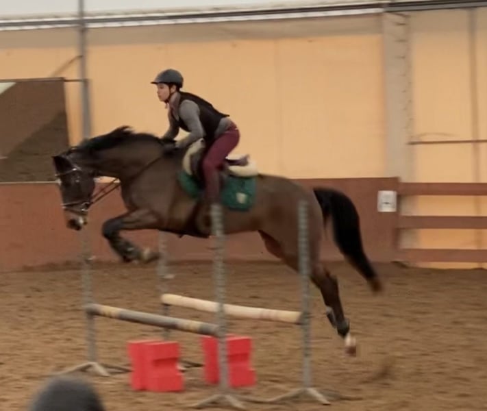 Na sprzedaż 13-letnia klacz po ogierze Clarimo (poziom 1.60, 3 zdjęcie, ojciec ponad 200 koni poziomu 1.45+), rasy Bawarski koń gorącokrwisty. Skacze do 100 cm pod amatorem, z możliwościami na dużo więcej. Dobra technika i potęga skoku. Brała udział w zawodach skokowych i ujeżdżeniowych. Spokojna i łatwa w obsłudze, grzecznie stoi przy czyszczeniu, goleniu, fizjo itd. Jest bardzo przyjemna do jazdy, jednak w stresowych sytuacjach potrafi się zawahać i potrzebuje pewnego jeźdźca, nie jest "samograjem". To koń raczej dla osoby, która jest gotowa na spokojnie pracować, jest cierpliwa i czerpie z tego przyjemność mimo trudności. Obecnie w kondycji hodowlanej, spędza całe dnie na pastwiskach, nie jest użytkowana pod siodłem (jest zdrowa i w każdej chwili może wrócić do pracy). Sprzedaż z powodu braku czasu. Cena do negocjacji przy szybkiej decyzji (kupno przed powrotem klaczy do pracy). W razie pytań proszę pisać.