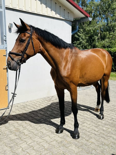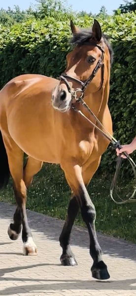 ⚜️ Golden Touch ⚜️ Pedigree: Casquetto x Quidam's Rubin born 2011 Training level: S** placed Golden Touch is a beautiful and very people-oriented mare who has achieved placements up to S** with young riders. With a height of 1.68 m, she perfectly accommodates both taller and shorter riders and impresses with her harmonious conformation. She is a reliable partner in the field, brave, fearless, and is not afraid of vehicles or other animals. "Touch" is also familiar with fox hunting and has no issues being in a group or going out alone. A true dream horse with excellent quality and top character!