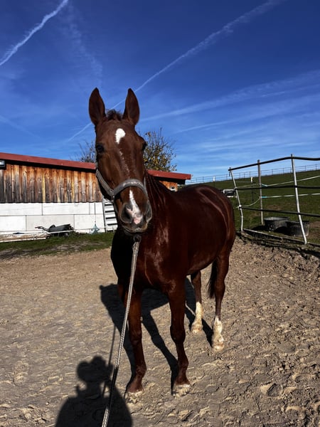 Samira ist ein sehr sehr umgängliches Pferd wenn man ihr Vertrauen gewonnen hat kann man mit ihr alles machen , sie hat kein Problem mit Kindern Hunden etc., Samira hat typisches Stuten Verhalten wo sie mal Grenzen austesten aber nie bösartig , ich verkaufe auch alles an Zubehör dazu