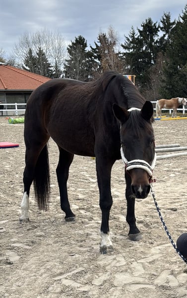 Ich gebe meine 19-jährige Warmblutstute ausschließlich an einen nachweislich sehr guten Platz ab. Unser 21-jähriger Haflinger-Wallach wird ebenfalls separat inseriert – beide können zusammen, aber auch getrennt vermittelt werden. In diesem Inserat geht es ausschließlich um die Warmblutstute. Charakter & Umgang: Sie ist eine zuverlässige, ehrliche und geduldige Stute, die sowohl im Gelände als auch auf dem Reitplatz viel Freude macht. Besonders in der leichten Dressurarbeit zeigt sie sich immer brav und kooperativ. Menschen gegenüber ist sie zu Beginn eher zurückhaltend und möchte sich ihr Gegenüber erst in Ruhe anschauen. Sie ist jedoch niemals ungut – sie braucht einfach ein bisschen, um Vertrauen zu fassen. Sie braucht einen Reiter mit feiner Züfelführung. Reiten & Ausbildung: geländesicher angenehm und zuverlässig auf dem Reitplatz kennt Dressurarbeit immer bemüht und geduldig auch bei der Bodenarbeit Nicht für sehr schwere Reiter geeignet Haltung: Sie kennt Herdenhaltung und kommt mit anderen Pferden gut zurecht, ist bei uns ranghoch aber nicht unfair. Ein liebevolles Zuhause mit viel Auslauf und artgerechter Haltung ist Voraussetzung. Gesundheit: keine Rehe, kein Cushing, kein Sommerekzem, regelmäßig geimpft, regelmäßig Hufschmied (ohne Eisen), regelmäßig entwurmt. Im Herbst manchmal ein wenig Mauke aber immer gut im Griff mit Salbe. Wichtig: Die Stute wird nur an einen geprüften Bestplatz abgegeben mit Vorkaufsrecht. Sie kann auch bei mir im Stall übernommen werden, dass wäre für uns vermutlich die schönste Lösung. Fotos, Videos und weitere Infos sowie der genaue Abgabegrund werden gern telefonisch besprochen. Bitte wirklich nur melden, wenn ernsthaftes Interesse besteht. Preis ist nicht im Vordergrund nur der Platz. Inkl. kompletten Zubehör