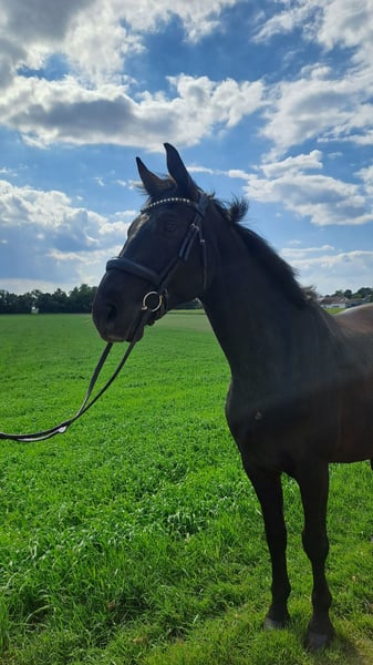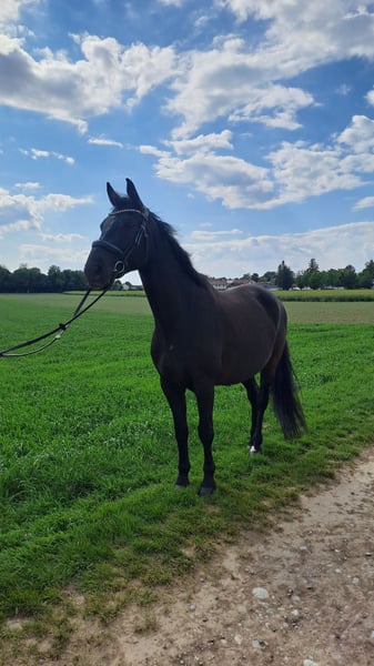 Rasse: Bayerisches Warmblut Alter: 9 Jahre Geschlecht: Wallach Stockmaß: 165 cm Farbe: Schwarzbraun Abstammung: Bossanova Haltungskonform: Aktivstall/Offenstall in der Wallachherde Verwendungszweck: Freizeit, Dressur, Working Equitation Er ist regelmäßig Entwurmt, geimpft und im März 2026 wurden die Zähne gemacht. Er besticht durch seinen äußerst feinen Charakter. Er ist verschmust, aufgeweckt und sehr intelligent. Er liebt die Haltung im Aktivstall und soll auch in Zukunft diese Art der Haltung genießen dürfen. Er ist zuverlässig und geht problemlos alleine ins Gelände – egal ob zum Spazieren oder Reiten. Er ist ein toller Reitpartner für alle, die Spaß an der Arbeit mit einem freundlichen und zuverlässigen Pferd haben. Er wird in der Halle, auf dem Platz oder im Gelände gearbeitet. Er hat regelmäßig Beritt. Er kommt super mit vielen Pferden auf Halle und Platz aus. Wir stehen auf einem Stall mit Schulbetrieb mit vielen Ponys. Der Vollständigkeit halber: Barni hat zwei kleine, seit Jahren unveränderte Sarkoide, die bisher keinerlei Probleme gemacht haben. Laut Tierarzt besteht aktuell kein Handlungsbedarf. Wichtig: Für ein Probereiten erbitte ich 50 €, die beim Kauf selbstverständlich zurückerstattet werden. Bitte nur ernst gemeinte Anfragen – keine Schulbetriebe. Bei Interesse oder Fragen stehe ich gern zur Verfügung. Ich freue mich auf eure Nachrichten!