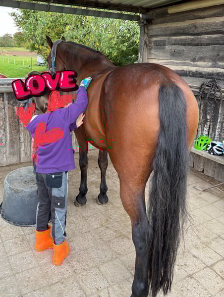 Traumkerl zum direkt losreiten und Spaß haben! Dieser Wallach will alles richtig machen. Und macht jeden Tag einfach Spaß. So ein Pferd findet man am Markt nicht oft, Preis der Qualität entsprechend. Dazu kommt eine tolle Abstammung. (Grannus auf Mutter Seite) Kann ihn mir super für eine Pony Umsteigerin als 1. Großpferd vorstellen, wenn ein Erwachsener ihn evtl 1x die Woche mit reitet. Kennt Ausbinder. Auch sicherer Wiedereinsteiger denkbar. Sehr rittig, mit Gebiss oder gebisslos. Parcoursfertig. Turnier bis A Springen vorgestellt. ( zuletzt 2023) Barhuf, unkompliziert beim Schmied. Impfungen sind aktuell. Ist regelmäßig bei Ostheo und Zahnarzt. Kennt Freispringen, Bodenarbeit, longieren mit Kappzaum, Cavaletti Arbeit, Platz und Halle. Auf Koppel geht er lieber mit Partner oder Sichtkontakt zu anderen. (Auch umgänglich in der gem. Herde) ins Gelände geht er allein oder in der Gruppe. Bockt nicht, macht keinen falschen Schritt. Ist aber auch keine Schlaftablette. Im Parcours blüht er auf, aber stets händelbar. Er springt immer, macht es sich zur Not passend. Hat noch nie geparkt! Lässt sich auch von Kindern putzen, reiten, Liebhaben ☺️ Verzeiht auch mal 1-2 Tage Pause ohne dass er „explodiert“. Keine Unarten, scharrt nicht beim anbinden etc. Einfach gut erzogen und kopfklar. (Scheren mag er nicht so, sollte hier leicht sediert werden) War bei mir nie ernsthaft krank. Hatte 1 Sarkoid am Ohr, welches 2023 entfernt wurde und nie wiederkam. Bekommt hier aktuell 2x / pro Tag Kraftfutter (haferfrei) und Mineralfutter und viel Heu! AKU von Pferdeklinik aus 2021 liegt vor. Wird nicht in Boxenhaltung abgegeben. Ich möchte mir den Stall vorher 1x ansehen. Rückkaufrecht behalte ich mir ebenfalls vor. Für das probereiten wird eine Aufwandsgebühr von 25€ erhoben um Reittourrismus zu vermeiden. Ein neuer Markensattel (Springsattel 17“) aus Oktober 2025, der an ihn angepasst ist, kann gegen Aufpreis mit erworben werden. Aufgrund geänderter Lebnsumstände abzugeben. Kein Notverkauf! (Mehr dazu gern privat) Bitte nur ein Pferd zulegen wenn man es sich auch langfristig leisten kann. (Kaufpreis plus laufende Kosten für mind. 10 Jahre) Wünsche mir ein Zuhause wo man mit Verstand und Liebe mit ihm arbeitet und sich die Zeit für ihn nimmt die er verdient! Kein Ratenkauf, kein zur Verfügung!