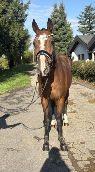 Diese äußerst liebenswerte Stute hatte bereits mehrere Fohlen. Da sie für 2026 nicht mehr besamt wurde wegen Bestandsreduzierung ist wird sie aktuell geritten. Evelien ist sehr brav also auch für schwächere Reiter und Kinder geeignet, da sie sehr unkompliziert und erfahren ist. Sie hat Erfolge bis 1.40m international vorzuweisen. Gerne in beste Hände!