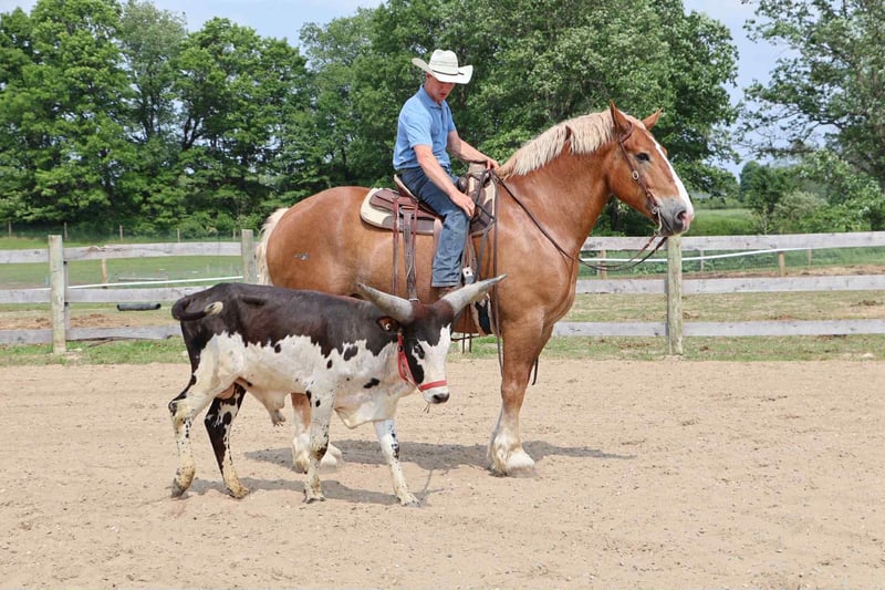 Subasta en línea Haz tus pujas en www.PlatinumEquineAuction.com Puja inicial: 3.500 dólares La subasta finaliza el 13 de julio de 2025 ¿Necesitas una silla nueva? ¡Consulta White Rock Saddles en nuestra página web o en Facebook! Mide aproximadamente 1,82 m (16.1 hh) y tiene 12 años. Su nombre es Tiny y es la definición de un gigante gentil. Tiny es un caballo gelding belga. Tiene un hermoso color alazán con crin y cola de flaxen. No dejes que su tamaño te engañe. Tiny puede caminar, trotar y galopar con facilidad. Conoce sus leads y realiza transiciones tanto hacia arriba como hacia abajo sin esfuerzo. Su galope es absolutamente encantador. Tiene una naturalidad rítmica y un equilibrio que le permiten girar en círculos en una taza de té. Con su tamaño y movimiento, tiene todo lo necesario para ser un excelente caballo de vaulting. Tiny es muy respetuoso con las personas. Cualquier persona, de cualquier edad o tamaño, puede liderarlo. Se lleva bien con todos los caballos y ponis en el exterior. Ha sido montado en caminos, campos abiertos y en la pista. Desde tareas de manejo de ganado, trabajo en pista, hasta paseos en carreta, tiene toda la formación. Está entrenado para montar en tándem y en doble, y ha sido en sulky. Ha participado en numerosos desfiles y no se asusta ante las multitudes ni el bullicio del centro de Detroit. Está 100% preparado para el tráfico, tanto bajo silla como en arnés. Le encanta explorar en carreras de caza y también ha estado en campamentos. Ha sido entrenado con métodos de doma natural. En su día, fue entrenado para sentarse y acostarse a comando. Tiny puede adaptarse a diferentes tipos de jinetes: es tranquilo y confiable para los niños pequeños y la abuela, pero también divertido para jinetes más experimentados. Disfruta viendo su video. Tiny vive en Howell, MI 48855. Para más información, llama a Ellesse Schwartz al 248-390-6831.