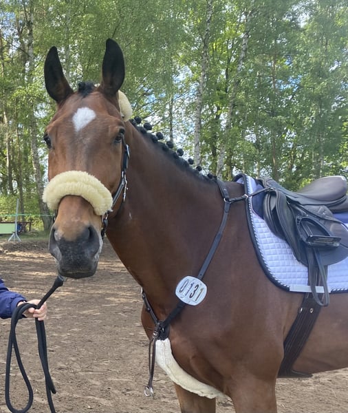 Lasco is a 14-year-old gelding standing approximately 17.6 hands. I purchased him last year without a trial ride. Unfortunately, it has become clear over the past few months that the chemistry between us when jumping is not ideal. His previous owner competed him from class A up to class S*. This season, he mainly competed in classes A and L, as I have been dealing with health issues. Both my 11-year-old daughter and my friends find him to be a reliable companion who has given us many wonderful moments. I believe he could be an excellent teacher for a rider looking to develop their skills. A recent pre-purchase examination has been carried out with no findings.