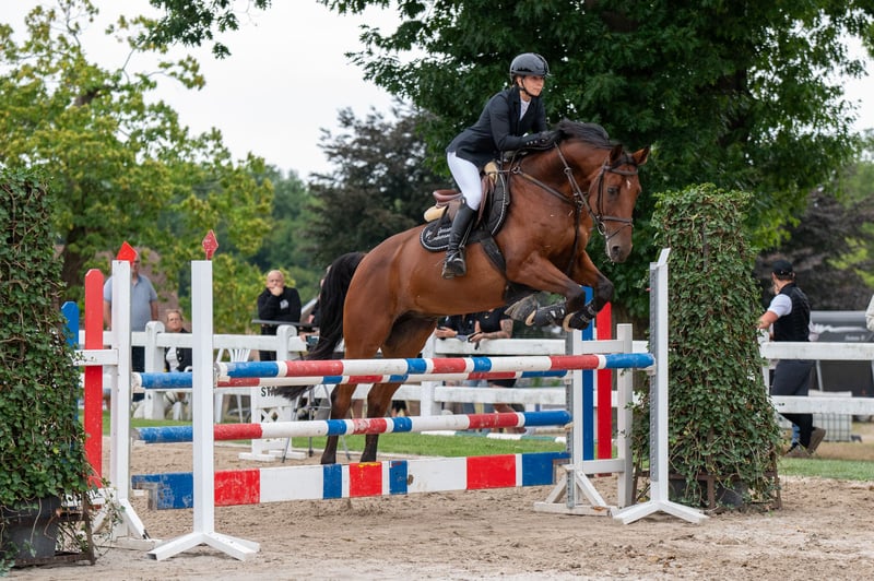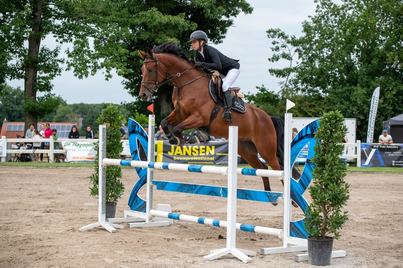 Mooie 8 jarige ruin. Super lief en aanhankelijk paard. Eerlijk karakter en gemakkelijk te rijden. En lammetje tijdens het dressuurwerk, op parcours eerder goed vooruit. Doet altijd zijn best om een foutloos rondje neer te zetten. Braaf tijdens buitenritten zowel alleen als in groep. Niet geschikt voor beginners, kan prima dienen voor overgang pony naar paard als de ruiter gewend is een voorwaartse pony te rijden. Een meewerkend paard om fijn mee te groeien. Hij heeft wedstrijd ervaring tot 1m20 waar hij verschillende keren foutloos en geklasseerd was. Hij gaat gemakkelijk de vrachtwagen op, is braaf bij de hoefsmid en bij de tandarts (jaarlijks). Schofthoogte 1.67m. RX goedgekeurd in september 2021.