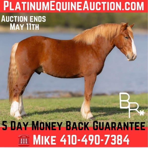 ONLINE AUCTION Place your bids at www.PlatinumEquineAuction.com Starting Bid $3500 Auction ends May 11th, 2025 Need a new saddle? Check out White Rock Saddles on our website or Facebook! Jake is the perfect draft cross gelding in a small size package. He is a 5 years old, standing a STOUT 15hh tall with a gorgeous sorrel color with white socks. Big, stout, short and what everyone is looking for. Easy to get on and off. Stands perfectly for grooming, saddling, bathing. Easy to catch in the field. Stands tied quietly. Gentle to be around and rides like a pro. Smooth gaited. Walk, jog, lope on a loose rein and also collects to the bridle. Trails rides extremely well and has performed all the trail obstacles without hesitation. Brave to ride out by himself and will not be buddy sour. Started over fences and is doing well. Brave, honest and straight to jumps with a flying change. Family type horse and beginner safe. Has a nice ground covering walk and trot. Would make an excellent prospect as a fox hunter/eventer. Will also suit beginner/novice trail riders or obstacle challenges and playdays. Does not get rattled by new scenery. This gelding has been in the program here at Beaver Ranch and we stand behind him 150%. Check out our video highlighting everything from saddling, loading, trail riding, obstacles, jumping and Walk, Jog, Lope. Sells with UTD basic PPE, Coggins, Health Papers, Vaccinations, Dentist, Farrier. We HIGHLY encourage customers to come try our horses in person before buying to ensure an excellent fit between horse and rider. We are so confident that you will love our horses that we will personally cover all travel and lodging expenses for the winning bidder if they come try before they buy/bid. While here you are welcome to try our horse any where/way that you like, on the trails, out on the ranch, in the arena or working cattle. Anyone who comes to try out horses in person will receive a 5 day money back guarantee from time the horse arrives in your possession. Also included will be the option to receive a 1 hour riding lesson with Beaver Ranch to better learn how to communicate with your new horse. NOW AVAILABLE!- Facetime/Skype video call meet and greet with Jake. Anything from handling/saddling to riding can be accommodated subject to availability. For more information on Jake or to schedule a time to visit Jake please contact Beaver Ranch Mike 410-490-7384 or Lindsey 443-786-5611 Located in Mountain Grove, MO. ONLINE AUCTION Place your bids at www.PlatinumEquineAuction.com Starting Bid $3500 Auction ends May 11th, 2025 Need a new saddle? Check out White Rock Saddles on our website or Facebook!
