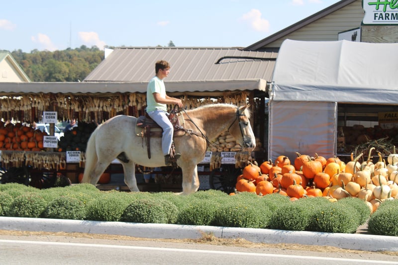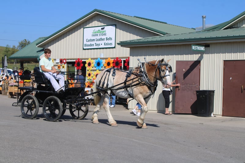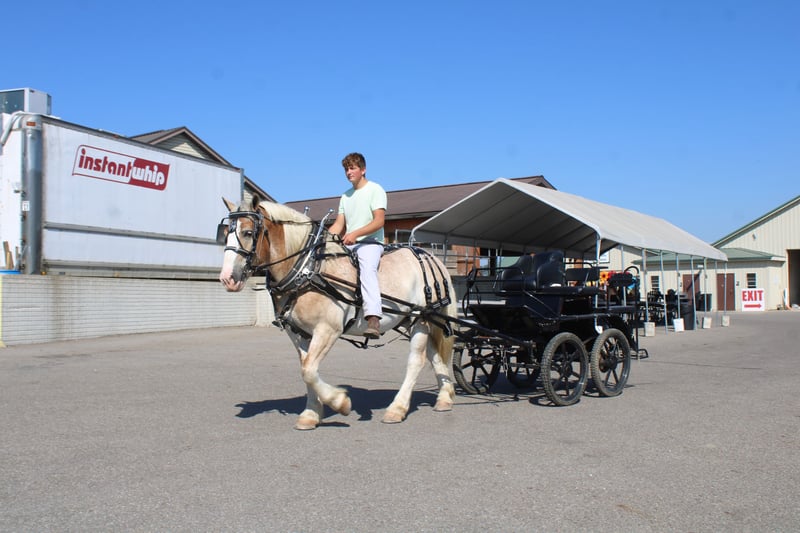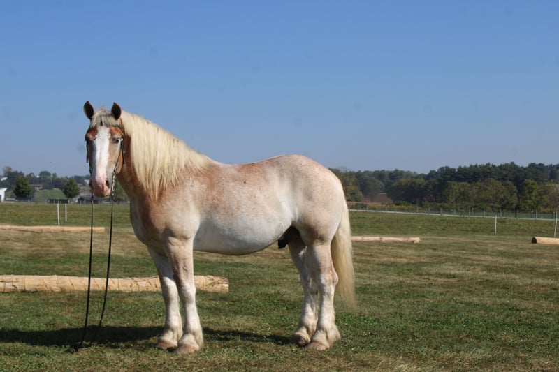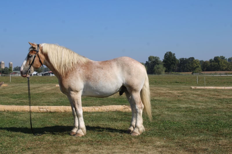 ♦️ 𝐭𝐡𝐞 𝐀𝐌𝐄𝐑𝐈𝐂𝐀𝐍 𝓕𝓪𝓵𝓵 𝓒𝓵𝓪𝓼𝓼𝓲𝓬 ♦️ Happening now thru MONDAY | OCTOBER 20th - Available EXCLUSIVELY on HorseBid's website! For more details and to register visit: www.Horsebid.com CONSIGNOR CONTACT: Hershberger's Farm 330-600-0197 LOCATION: Millersburg, OH BREED: Belgian X Quarter Horse REGISTERED: No COLOR: Strawberry Roan HEIGHT: 16.1 AGE: 7 GENDER: Gelding Hershey's Romeo is A 7 year old strawberry roan Belgian X Quarter Horse. KIDSAFE, RIDES, DRIVES, TRAFFIC SAFE, STANDS TO MOUNT, GETS ALONG WITH OTHER HORSES!!!! HERSHEY'S ROMEO CHECKS ALL THE BOXES!!!! R0me0 stands A perfect 16.1 HH. The right size, color, and conformation that makes him really special!! He is very well trained to ride and drive. He has been driven in a team as well as single. Romeo does great on trails as he is very sure footed for stepping over logs and going a rugged trail. When trail riding Romeo also loves going through a stream or wade in a river or pond and play in the water. Romeo also does great at picking his feet up when cleaning them out and for the farrier. Romeo as been used here a lot for carriage rides and giving kids rides in our Merry-Go-Round. Whether it is driving him out on the busy state road or going for a leisure ride through the trails he is always very brave and will go wherever you point him. Here is a very sweet minded horse that has that beautiful roan color that will stand out wherever you go!!!! HERE HE IS HERSHEY'S ROMEO THAT NICE HANDY SIZE... FOR MORE INFO CONTACT JOHN @ 330 600 0197.