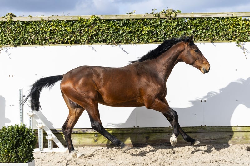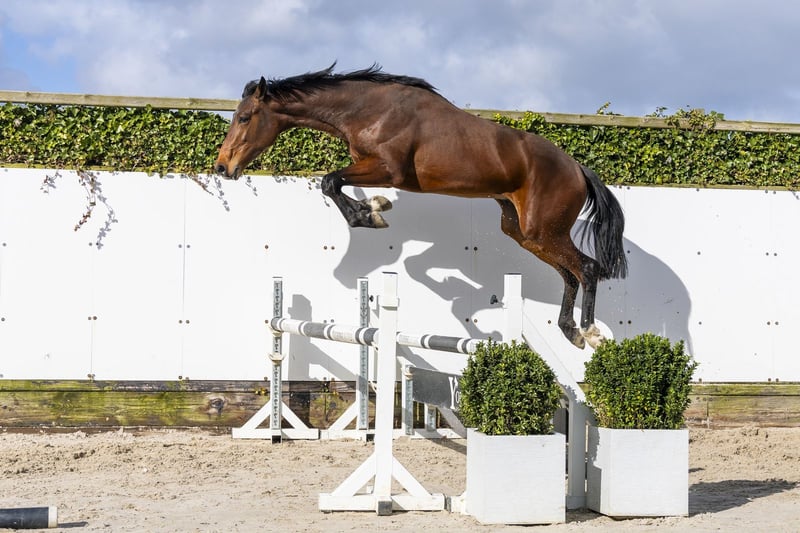 Balou du Marais DD is een mooie, grote tweejarige die opvalt door zijn vermogen en souplesse. Hij beschikt over ruime gangen en laat veel afdruk zien op de sprong. Een paard met een sterke motor dat alles met veel gemak uitvoert. Vermogen en kwaliteit, dat straalt hij duidelijk uit. Hij beweegt lichtvoetig en laat al zien dat hij over veel balans beschikt voor zijn leeftijd. Een paard dat zich makkelijk ontwikkelt en waarvan wij verwachten dat hij later hoge parcoursen zal gaan springen. Wat betreft afstamming is dit echt iets aparts, en wat we tot nu toe zien, belooft dit paard zeer veel voor de toekomst. Vader Equitron Naxcel V springt op het allerhoogste niveau tot en met 1.65m en behoort tot de absolute wereldtop. Hij is een zoon van Balou du Rouet (1.60m) en geeft vermogen, instelling en kwaliteit door. Moeder J’Adore du Marais DD is een dochter van Nabab de Reve (1.60m) en komt uit een zeer sterke prestatielijn. De moederlijn is bewezen met meerdere paarden op niveau: Oxygene du Marais DD – 1.45m Pompidou du Marais DD – 1.40m IQ du Marais DD – goedgekeurde hengst, 1.40m Mi Amor du Marais DD – 1.35m Up To Date van Celle Broedersbos – 1.60m Een stam met kracht, vermogen en prestaties.