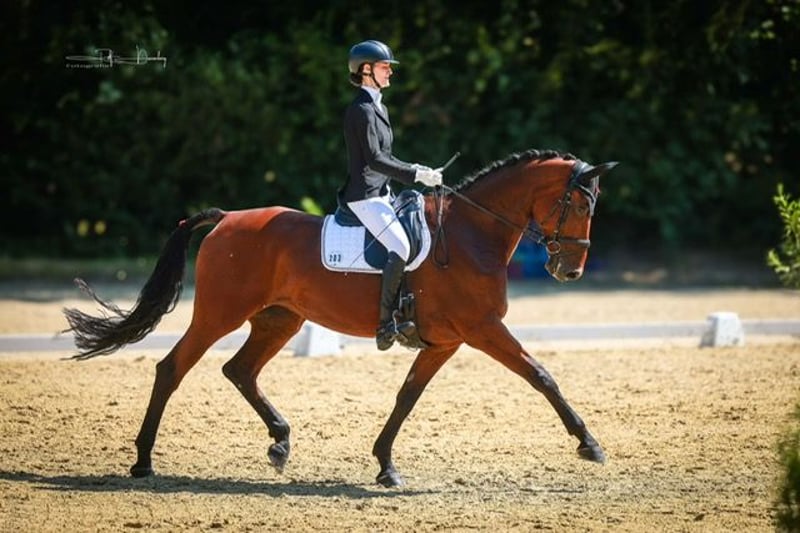 Zum Verkauf steht eine wunderschöne belgische Warmblut-Stute. Parfait D'Amour ist 10 Jahre alt und überzeugt durch ihre beeindruckende Erscheinung. Sie ist ein imposantes Dressurpferd mit schwungvollem Bewegungsablauf, wodurch sie sich bereits mit Noten bis 7,8 mehrfach in A* und A**-Dressuren platzieren konnte. Allerdings kann sie am Turnier auch mal nervös werden, wodurch es dann zu Fehlern kommen kann. Deswegen ist sie noch nicht immer verlässlich erfolgreich, aber immer eine Freude bei der weiteren Ausbildung. Aktuell lernt sie die Lektionen der Klasse L und kann in den richtigen Händen sicher auch weiter gefördert werden. Zusätzlich ist Parfait unkompliziert im Umgang, sowie brav und unerschrocken im Gelände und in der täglichen Arbeit auf dem Platz und in der Reithalle. Aufgrund ihres lieben Charakters macht sie auch mit Spät- oder Wiedereinsteigern einen zuverlässigen Job.