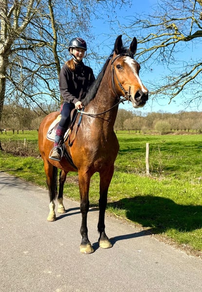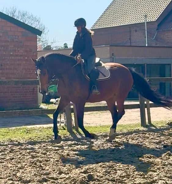 Giant - Sturdy - School Horse ✨ Gentle 11-year-old mare, approximately 175 cm tall! Dutch Warmblood mare Sire: Va Vite - Heartbreaker Dam: Massimo - Cassini I A lovely all-rounder: rides nicely in dressage, can jump, and is comfortable on the trail — traffic safe. She has been standing still for a few years as she has had two foals. We are gradually resuming her training, and she will join in on trail rides. A nice school horse that knows her work. Reason for sale: reduction of horses. 0032496619693 Bornem, Belgium www.stalcloverhof.be