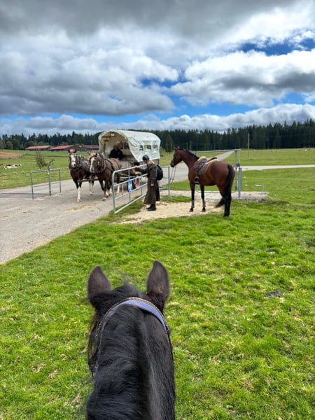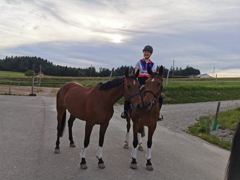 It’s a stroke of luck for someone that I am selling my horse... ... and what a horse it is! An exceptionally versatile mare (born 2013) that’s a real showstopper. - Well-known pedigree (sire is H C.S.R Center → Cento, dam is H Jade → Replay) - Very social with other horses, loved by all - Obedient on the lead, walks nicely at hand (I have a retired mare and ride various horses) - Great partner for rides alone, in a group, and even multiple days in the Jura mountains - Jumps effortlessly, experience in show jumping courses up to 110/115 cm - Lunges, groundwork, gymkhana, cross-country obstacles, breakfast in the river, Christmas aperitif in the woods (tied to a tree), and she happily carries the Grinch home; she’s the partner for everything - She handles clipping, farrier work, physiotherapy easily; dental care, vaccinations, and deworming are all up to date; she’s in training and in top form - Currently housed in a turnout box She’s the partner for almost everything— - Not a dressage superstar, she performs the routine obediently, but judges might not be thrilled by her gaits - Jumps with ease but shouldn’t be pressured to go higher all the time - Has a wonderful temperament, always motivated, never lazy, eager, and easy to handle. This means she’s not suitable as a beginner’s horse. I am selling her because the older mare I have gifted me a wonderful young horse. The mare can stay, and so can her foal. Narcos came to me three years ago for training and sale on behalf of a client. I fell in love, and the rest is history. Narcos deserves a new, loving home with kind people. Numerous photos and videos available. No urgent sale. Contact: Tajana Moser, 079 934 42 16