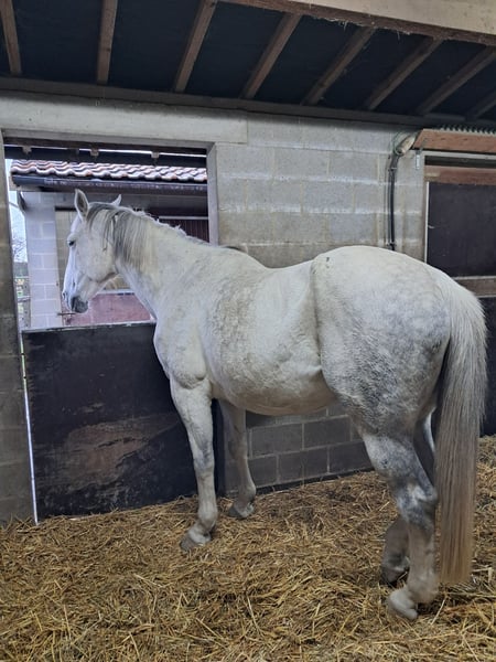Große Stute, geboren am 14. Februar 2012, 173 cm groß. Ausgebildet 2019, jedoch ausschließlich für die Zucht genutzt. Sehr angenehmes Wesen, äußerst fürsorglich. Ihre Nachkommen: - Palinko du Bois Halleux, M50 (Frankreich) - Qhyra du Bois Halleux, M35 (Deutschland) - Ulhick du Bois Halleux, M10 (Portugal) - Cripsi du Bois Halleux, die jüngste im Jahr 2025 geboren (verkauft nach Deutschland) Malika du Bois Halleux, Tochter von Ironie du Bois Halleux (Elite-Merrie BWP), die unter der Reiterin und Besitzerin Isabelle Gerfer in den Disziplinen M50-55 erfolgreich war. Ironie: - Erste Platzierung in Galhen U25 M50 - Erste Platzierung in Mannheim U25 M50 - 7. Platz in Aachen U25 M50 2018-2019 + zahlreiche weitere gute Ergebnisse in M40/45 Ich suche ein neues Zuhause für Malika. Sie hat noch einige Jahre für die Zucht vor sich. Händler bitten wir, von einer Kontaktaufnahme abzusehen. Grund: Berufsaufgabe