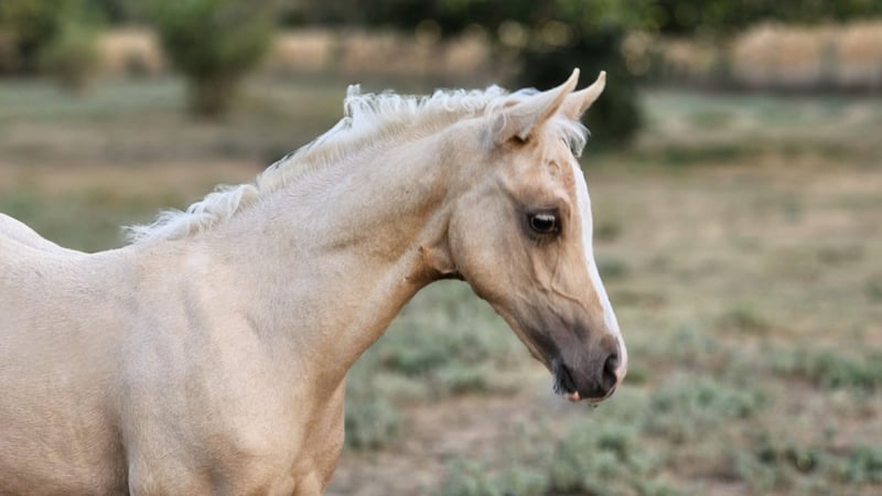 A sweet, friendly mare. Pedigree: by an Arabian purebred mare and a cremello sport pony stallion.