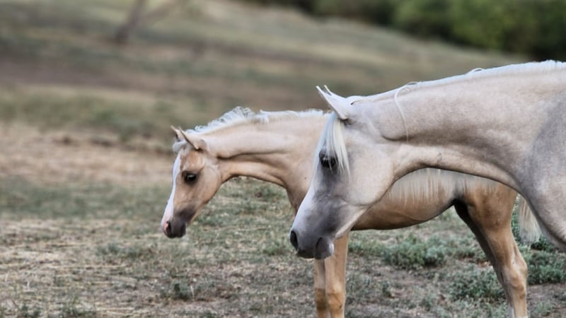 Ein liebes, freundliches Stute. Abstammung: von einer arabischen Vollblutstute und einem cremello Sportponyhengst.
