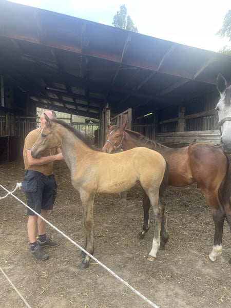 Feine, athletische Jährlingsstute von C-Jay Z (Cumano) aus einer Bisquet Balou x Landor S-Stute. Geboren im April 2024. Die Mutter dieser Stute, Lenor van de Mispelaere (Bisquet Balou x Landor S), stammt aus der BWP-Leistungsfamilie 32. Die Stute zeigt große Vorsicht am Sprung und war erfolgreich bis 1,10 m–1,20 m im Sport. Sie ist eine äußerst verlässliche Stute, die immer ihr Bestes gibt. Zwei ihrer Nachkommen starten derzeit als Hunter/Equitation-Pferde in den USA. Die übrigen Nachkommen wurden bisher noch nicht verkauft. Der Vater, C-Jay Z, ist ein spektakulärer Springer mit viel Rahmen, gezogen vom Weltklasse-Athleten und bedeutenden Vererber Cumano. Seine Mutter, Gigi van het Daalhof (von Kashmir van Schuttershof), sprang erfolgreich bis 1,50 m unter Abdel Said. Sie hat bereits zwei Black-Type-Nachkommen hervorgebracht. Belize Overlede Goed ist eine große, langlinige Stute mit drei raumgreifenden, korrekten Grundgangarten. Sie ist intelligent, lernwillig und verfügt über das richtige Maß an Blut. Sie springt vorsichtig und verbindet hervorragende Technik mit viel Vermögen. Diese Stute wird direkt vom Züchter zum Verkauf angeboten.