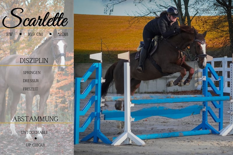 Scarlet is a mare born in 2018, Belgian Warmblood, approximately 16.1 hh, sired by Untouchable, Heartbreaker, Up Chiqui, Heartbreaker. *Scarlet* is an exceptionally honest mare with excellent quality. Whether for sport or leisure riding, she brings only joy. She provides a secure and confident feeling. Scarlet can also be used as a jumping school horse; she is equally honest and straightforward in this discipline. She jumps with good overview and sufficient quality, always trying her best. Therefore, she is also very suitable for young riders and Pony Club beginners. Very calm and unflappable, she handles unfamiliar environments without any issues. Whether alone or in a group, she remains relaxed and well-behaved in the countryside. She also gives nervous riders a good feeling. In handling, she is affectionate and well-trained. A dream horse. Horse dealership Dederichs – Your partner for horse purchasing Contact & Availability: Inquiries only by phone at 0173/9792139 Monday – Friday: 9:00 AM – 6:00 PM Saturday: 9:00 AM – 3:00 PM Sunday: Closed Follow us on social media! Experience our daily work with sale horses on Instagram, TikTok & Facebook under Pferdehandlung Dederichs Discount: Receive 5%–10% off when taking your new dream horse immediately Trial Riding & Demonstrations: • Trial ride: €30 per horse (up to 2 riders), amount credited upon purchase • Public holidays: Trial ride €50 • Demonstration by our trainers: €25 per horse (groundwork, lunging, etc.) Pre-Purchase Examination & Transport: • Many of our horses already have a pre-purchase exam (AKU) • You are welcome to bring your own veterinarian • We can organize an examination for you • We are happy to assist with transportation to your new home Other Horses for Sale: We have additional horses for sale in our stable that are not yet listed online. If your dream horse is not yet among them, please do not hesitate to contact us. Important Notes: • Estimated height measurements are approximate and not precisely measured • All descriptions are subjective assessments by the seller and do not constitute guaranteed characteristics For more information, visit: www.Pferdehandlung-Dederichs.de