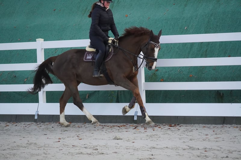 Scarlet to klacz urodzona w 2018 roku, rasy Belgijski Czystej Krwi, około 170 cm, po Untochable, Heartbreaker, Up Chiqui, Heartbreaker. *Scarlet* to absolutnie szczera klacz o doskonałej jakości. Zarówno do sportu, jak i rekreacji, z nią można tylko czerpać radość. Daje poczucie bezpieczeństwa. Scarlet może być również wykorzystywana jako koń treningowy do skoków, również w tym zakresie jest całkowicie szczera i łatwa w obsłudze. Skacze z dużą pewnością i odpowiednią jakością, stara się zrobić wszystko, co możliwe. Dlatego jest także świetnym wyborem dla młodych jeźdźców i początkujących na kucach. Bardzo spokojna i nie boi się nowych środowisk, także w terenie, zarówno solo, jak i w grupie, zachowuje się bardzo spokojnie i grzecznie. Daje dobre uczucie także mniej doświadczonym jeźdźcom. W obsłudze przyjazna i świetnie wychowana. Idealny koń marzeń. Hodowla koni Dederichs – Twój partner w zakupie konia Kontakt i dostępność: Prosimy o zapytania wyłącznie telefonicznie pod numer 0173/9792139 Poniedziałek – piątek: 09:00 – 18:00 Sobota: 09:00 – 15:00 Niedziela: dzień wolny Śledź nas w mediach społecznościowych! Zobacz naszą codzienność z końmi na Instagramie, TikToku i Facebooku pod hasłem Pferdehandlung Dederichs Rabat: Przy natychmiastowym odbiorze nowego wymarzonego konia otrzymujesz rabat od 5% do 10% Próba jazdy i prezentacja: • Próba jazdy: 30 € za konia (max. 2 jeźdźców), kwota zostanie odliczona od ceny zakupu • Święta: jazda próbna 50 € • Prezentacja przez naszych jeźdźców: 25 € za konia (jazda próbna, praca na ziemi itp.) Badanie przed zakupem i transport: • Wiele naszych koni ma już przeprowadzone badanie AKU • Oczywiście możesz zabrać własnego weterynarza • Chętnie zorganizujemy badanie • Chętnie pomożemy również w transporcie do nowego domu Inne konie na sprzedaż: W naszym stajni czekają kolejne konie na sprzedaż, które jeszcze nie są online. Jeśli Twoje wymarzone konie jeszcze nie ma w ofercie, nie wahaj się z nami skontaktować. Ważne informacje: • Szacunkowe wzrosty są podane orientacyjnie i nie zostały dokładnie zmierzone • Wszystkie opisy są subiektywną oceną sprzedającego i nie stanowią gwarancji cech konia Więcej informacji znajdziesz na stronie: www.Pferdehandlung-Dederichs.de