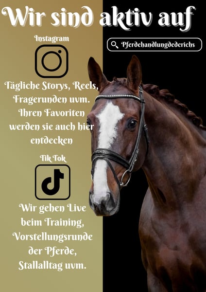 Scarlet ist eine 2018 geborene Belgische Warmblut Stute ca. 170cm v. Untochable, Heartbreaker, Up Chiqui, Heartbreaker *Scarlet* ist ein absolute ehrliche Stute mit toller Qualität. Ob Sport oder Freizeit, mit ihr hat man nur Freude. Sie vermittelt ein sicheres Gefühl. Scarlet kann auch als Springlehrpferd eingesetzt werden, auch da absolut ehrlich und einfach. Sie springt mit viel Übersicht und genügend Qualität, versucht alles möglich zu machen. Scarlet ist daher auch für Jugendliche und Ponyumsteiger super geeignet. Super cool und nicht umweltorientiert, fremde Umgebungen sind auch kein Problem. Im Gelände alleine und in der Gruppe super entspannt und brav. Gibt auch ängstlichen Reitern ein gutes Gefühl. Im Umgang verschmust und super erzogen. Ein Traumpferd. Pferdehandlung Dederichs – Ihr Partner für den Pferdekauf Kontakt & Erreichbarkeit: Anfragen bitte ausschließlich telefonisch unter 0173/9792139 Montag – Freitag: 09:00 – 18:00 Uhr Samstag: 09:00 – 15:00 Uhr Sonntag: Ruhetag Folgen Sie uns auf Social Media! Erleben Sie unseren Alltag mit den Verkaufspferden auf Instagram, TikTok & Facebook unter Pferdehandlung Dederichs Rabatt: Bei sofortiger Mitnahme Ihres neuen Traumpferdes erhalten Sie zwischen 5 %– 10 % Rabatt Probereiten & Vorführen: • Probereiten: 30 € pro Pferd (max. 2 Reiter), Betrag wird beim Kauf angerechnet • Feiertage: Proberitt 50 € • Vorführung durch unsere Bereiter: 25 € pro Pferd (Vorreiten, Bodenarbeit etc.) Ankaufsuntersuchung & Transport: • Viele unserer Pferde besitzen bereits eine AKU • Sie können selbstverständlich Ihren eigenen Tierarzt mitbringen • Gerne organisieren wir eine Untersuchung • Wir unterstützen Sie auch gerne beim Transport ins neue Zuhause Weitere Verkaufspferde: In unserem Stall stehen weitere Verkaufspferde, die noch nicht online sind. Falls Ihr Traumpferd noch nicht dabei ist, zögern Sie nicht, uns zu kontaktieren. Wichtige Hinweise: • Stockmaß-Angaben sind geschätzt und nicht exakt nachgemessen • Alle Beschreibungen sind subjektive Einschätzungen des Verkäufers und keine zugesicherten Eigenschaften Weitere Informationen finden Sie unter: www.Pferdehandlung-Dederichs.de