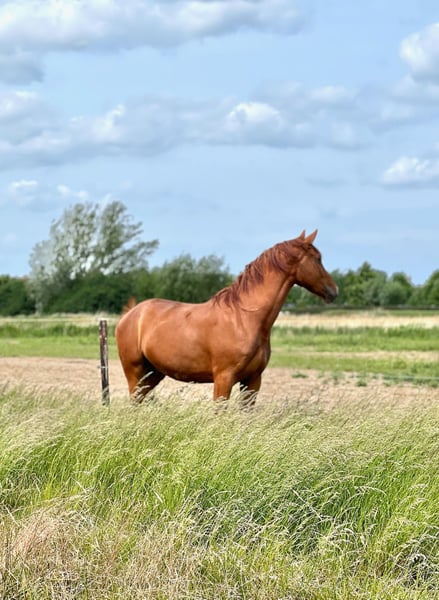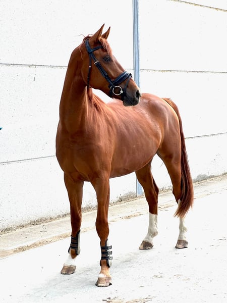 Wasco van de Sparrenhoef ist ein Sohn des Dressurhengstes Hexagon’s Dutch Newman. Seine Mutter stammt vom Hengst Flemmingh ab. Wir haben ihn als Fohlen direkt vom Züchter gekauft. Mit drei Jahren haben wir mit dem Anreiten begonnen, was er sehr gut angenommen hat. Er hat sich zu einem auffallend schönen Pferd mit einem Stockmaß von 1,71 m entwickelt. Wasco zeigt eine elegante Aufrichtung, ein korrektes Fundament und ein harmonisches Gebäude mit einer gut bemuskelten Hinterhand. Er verfügt über drei überdurchschnittliche Grundgangarten mit einem aktiven Hinterbein. In der Bewegung zeigt er natürliche Balance und eine gute Rückentätigkeit. Am 23.09.2025 wurde er klinisch und röntgenologisch untersucht; der Bericht und die Aufnahmen sind verfügbar. Er hat eine kleine Narbe am linken Hinterbein, verursacht durch einen Tritt im zweijährigen Alter, bei dem ein Teil des Griffelbeins entfernt wurde. Dies beeinträchtigt ihn jedoch in keiner Weise (siehe Untersuchungsbericht). Er wird derzeit weiter in der Biegung und Losgelassenheit trainiert und lässt sich in allen drei Grundgangarten leicht reiten.