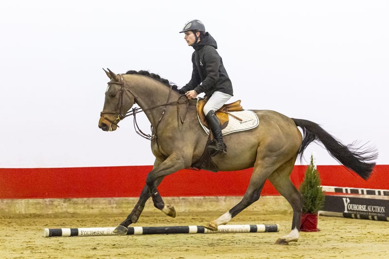 Vamore van de Noordheuvel is a horse that clearly combines quality and mentality. He exhibits a distinct Heartbreaker-type, with a beautiful conformation, a strong front, and an attractive presence. His neck and frame give the rider a secure and comfortable feeling. In his work, he demonstrates a very good attitude and a strong willingness to perform. Over fences, Vamore shows his quality. He jumps with scope, approaches fences confidently, and displays a good take-off. His mentality is outstanding: he wants to excel and jumps with overview. He is easy and pleasant to handle. Additionally, he has good basic gaits, with a correct trot and a balanced canter. Thanks to his movement and appearance, we believe he would also be suitable for dressage, making him interesting for multiple disciplines. His sire, Mandoro ’P’ (Emerald van ’t Ruytershof x Andora P), competed at 1.50m level and combines the top bloodlines of Emerald van ’t Ruytershof (1.60m, Olympic level) with a strong performance line. Emerald is renowned for producing international top showjumpers with scope, reflexes, and mentality. His dam, Ti Amore (Heartbreaker x Doree), competed at 1.20m level and carries the influential blood of Heartbreaker, one of the most important sires in modern showjumping. From this direct damline comes Qadir van de Noordheuvel (by Guidam Sohn), who competed at 1.35m. The second dam, Doree (Ramiro Z), competed at 1.10m and hails from a very strong performance family. This line has produced, among others: - Loreehn (Grandeur) – 1.60m showjumping - Aimy D (Alexis Z) – 1.60m showjumping - Conca d’Or Z (Carthago) – 1.40m, AES/ZVCH-approved stallion The third dam, Wesselina (Heidelberg), is a keur and preferent mare and forms the foundation of this damline, which includes multiple horses competing at 1.30m to 1.60m levels, as well as approved stallions. Vamore van de Noordheuvel combines presence, scope, and a proven sport pedigree. A horse with a good mentality, quality gaits, and jumping ability, suitable for riders seeking a versatile and attractive sport horse.