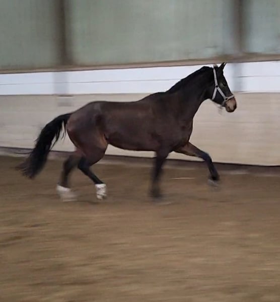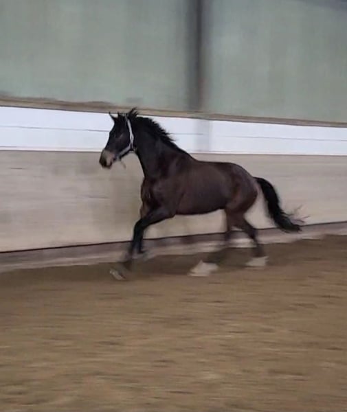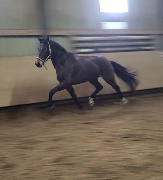 Junger vielversprechender Wallach in jungpferdeerfahrene Hände abzugeben. Mit viel Qualität und Perspektive. Im Auftrag. Wird nächsten Monat 5 Jahre alt (geboren im März.2021), mit einem aktuellen Stockmaß von ca 1,70m, 3 gute GGA und gute Abstammung. Belgischer Pass. Menschenbezogen, aber im Umgang recht verspielt und frech. Benötigt daher noch weitere konsequente, aber faire Ausbildung am Boden. Bei der Vorbesitzerin wurde er angeritten und hat erste Sprünge kennengelernt, wo er sich sehr ordentlich und mit Übersicht und Spaß gezeigt hat. Videos vorhanden.Aktuell jedoch bei uns noch nicht geritten, da er noch Muskulatur aufbauen sollte. Deshalb kein Probereiten (oder nur auf eigene Gefahr) möglich. Bitte beachten, dass es sich um ein Jungpferd handelt, welches noch weitere Ausbildung benötigt, kein Anfängerpferd! Ein absoluter Rohdiamant mit enorm Entwicklungspotenzial, der noch etwas Zeit, Erfahrung und Gefühl benötigt. Fühlt sich im Offenstall am wohlsten, kennt aber auch 24/7 Koppel und nachts Box/tagsüber mehrstündigen Paddock. Am 02.02 frisch beschlagen (vorne Eisen) und am 03.02 der Physio vorgestellt. Standort aktuell: 63546