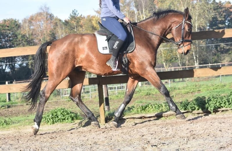 Rechtstreeks van de fokker mochten wij hem overnemen, samen met stalgenootje Valesco vd Melane. Ontmoet Voltaire van de Melane, een imposante en elegante 5-jarige ruin van ca. 1.75m, met een uitstekende afstamming: Querido VG x Concorde Z x Tresor D 12. Klik HIER voor zijn papier. Een paard met een mooie toekomst , geschikt voor zowel sport ( dressuur+ springen) als recreatie. Voltaire is prachtig gebouwd en beschikt over veel uitstraling en souplesse. Het is een vriendelijk, vrolijk en positief paard. Onder het zadel laat hij hier zijn natuurlijke balans en meewerkende karakter zien. Hij zoekt fijn de verbinding met de ruiter en is prettig te rijden. Hij is hier en voorheen goed verkeers,- en trailermak. Heel erg sociaal. Vrij van ( stal) gebreken. Voltaire is kerngezond en kan enorm goed bewegen, met veel cadans , balans en ruimte. Hij is röntgenologisch en klinisch goedgekeurd, zowel de benen als rug en hals. Is onlangs door de tandarts behandeld, in bezit van een recent rapport. € 9750,- incl. merkzadel en hoofdstel compleet.