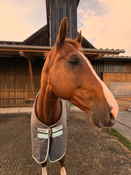 Schweren Herzens suche ich für meinen 9-jährigen Fuchswallach „Ronaldo“ ein neues, passendes Zuhause. Er ist ca. 1,70 m groß, besticht durch seine schönen Gänge und sein liebenswürdiges Wesen. Dressurmäßig ist er solide ausgebildet und bringt eine gute Basis mit, auf der sich weiter aufbauen lässt. Im vergangenen Jahr absolvierte er zudem drei Parcours auf Turnieren in der Höhe von 90–95 cm mit einem erfahrenen Reiter. Ronaldo ist im täglichen Umgang absolut unkompliziert: Er ist sehr brav beim Hufschmied, lässt sich problemlos verladen und ist auch alleine gut händelbar. Er zeigt sich stets freundlich, menschenbezogen und zuverlässig – kein Bocker oder Steiger. Beim Springen hat sich jedoch gezeigt, dass wir als Paar nicht optimal harmonieren. Daher sehe ich ihn eher als vielseitigen Freizeitpartner. Für Cavalettiarbeit, sowie abwechslungsreiche Arbeit wie Bodenarbeit, Longieren und Dressur ist er geeignet. Ich wünsche mir für Ronaldo eine einfühlsame Person, die Freude daran hat, ihn weiter zu fördern und ihm ein liebevolles Zuhause bietet. Weitere Informationen, Videos und Preisangaben gerne auf Anfrage. Keine Händler!