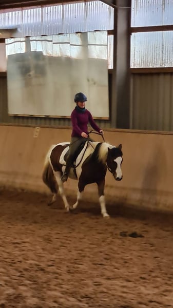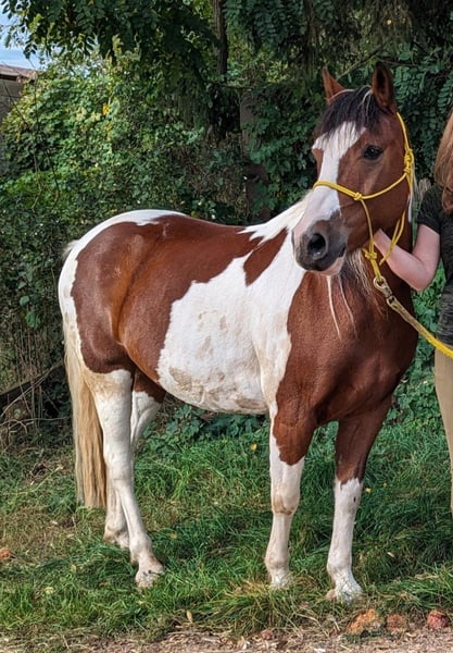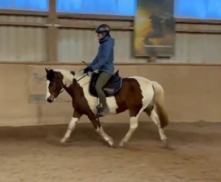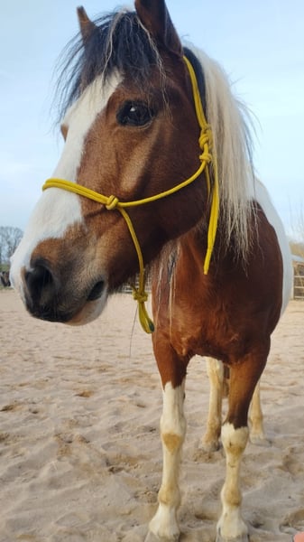 Rambo, Belgisches Pony, 141 cm, geboren 26.06.2012 Platz vor Preis. Nur in beste Hände. Mehrfache Termine zum Kennenlernen möglich und erwünscht. Ruf bei Interesse oder wenn du mehr wissen möchtest bitte an unter 01605565226. Passender Sattel wird mit verkauft. Deckt Reiter bis ~ 175 cm ab, max 70 kg Kein Kinderpony, für Erwachsene oder reife Jugendliche geeignet Charakter: - Freundlich, ehrlich, sehr bemüht, sehr aufmerksam, schlau, deutliche Körpersprache und Mimik, charmant - teils schreckhaft, skeptisch - Testet auch mal, ist aber sofort zufrieden, wenn man weiterhin die Führungsrolle übernimmt Herde: eher dominant; sozial; verträglich; springt nicht auf; klebt nicht Gesundheit: - Hustet zu Beginn der Bewegung, vornehmlich bei Trockenheit, ist tierärztlich abgeklärt, Leistungsfähigkeit nicht beeinflusst - Ansonsten keine Mängel bekannt (ich bin selbst als Pferde Physiotherapeutin tätig) Ausbildungsstand: - Klassische Dressur nach École de Légèreté Sehr fein zu reiten und bemüht Alle Seitengänge in Schritt und Trab Erstes erfolgreiches Diagonalisieren und Verkürzen der Tritte Aktueller Fokus: allg. Galopparbeit und Außengalopp - Kein Springtalent - Solide in Freiarbeit, Handarbeit, Bodenarbeit. Viel Potential für Parelli, Zirzensik Gelände: - Im positiven Sinne fleißig, auch längere Ritte kein Problem - Teils skeptisch ggü Fahrrädern; Traktoren; Kinderwägen -> Kein „Verlasspferd“, aber immer handelbar, beruhigt sich schnell, wird nicht heiß - Klebt nicht, auch alleine unterwegs Auch zur Verfügung denkbar