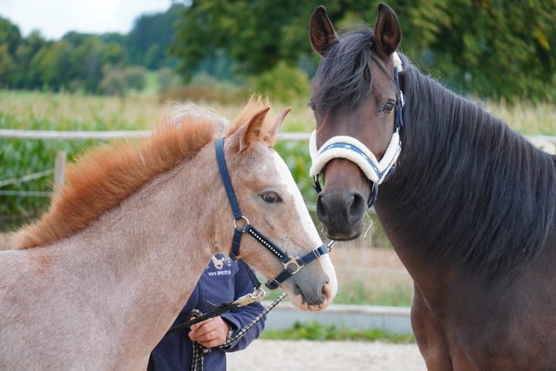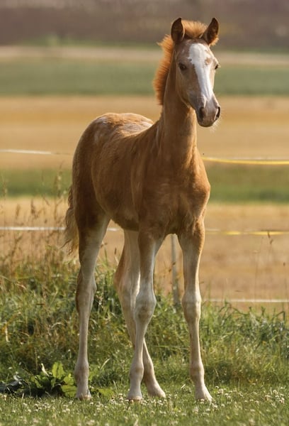 Yamila wurde im Mai diesen Jahres als zweites Fohlen unserer selbst gezogenen Araber Berber Stute Qashkayah geboren. Ihre Mutter ist sowohl Prämien als auch Leistungsstute im VFZB. Auch ihr Vater lebt bei uns und ist im Hengstbuch des VFZB eingetragen, er wird im Moment auf die Hengstleistungsprüfung 2026 vorbereitet und klassisch barock ausgebildet. Yamila hat über ihre Großmutter mütterlicherseits, die ebenfalls bei uns lebt, 25% AV Anteil. Sie ist berbertypisch sehr menschbezogen, ausgeglichen, neugierig und lernt gerne und schnell. In unserer kleinen altersgemischten Berberherde kommt sie gut zurecht, ist anderen Pferden gegenüber aufgeschlossen und freundlich, auch andere Tiere hat sie hier schon neugierig kennen gelernt. Gerne geht sie als Handpferd mit ihrer Mutter auf kleine Ausritte und lernt schon ihre Umwelt kennen. Gerne können Sie mit uns einen Termin zum Kennenlernen mit uns vereinbaren.