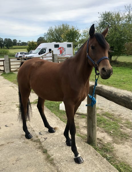 ✨ JUPETTE – 6 years old ✨ Beautiful 6-year-old Arabian Thoroughbred mare, standing at 1.50 m at the withers. Descended from very fine bloodlines (THEBES ORIENTAL × BALERINE DES PICARDS, 100% PSA). 💫 Jupette is a versatile and charming mare, ideal for a rider seeking to progress confidently. ✅ Her strengths: - Versatile: jumping, dressage, trail riding, ground work - Gentle, respectful temperament, very close to humans → perfect for building a strong bond - Promising endurance potential thanks to her lineage - Lives both in the paddock and in the stable, currently barefoot - Up to date on all vaccinations, deworming, dental care, and osteopathy 📍 Location Viewable in Cintré (35) – 20 minutes from Rennes Trial possible in an outdoor arena and indoor riding hall 🐴 Price: 7,500 € 🥕🥕 negotiable 📞 Contact me via private message for more information, photos/videos, and to arrange a visit/test ride