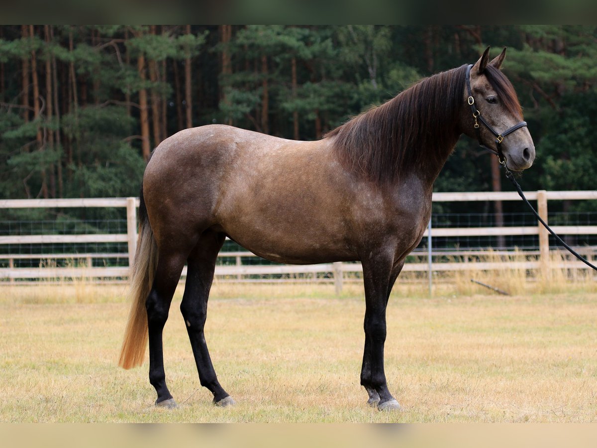 Oreliè lebt seit ihrem 7. Lebensmonat bei uns, wuchs mit engem Familienanschluss auf und ist schonend angeritten und eingefahren. Sie ist dem Menschen sehr zugetan, nervenstark, verlässlich und liebevoll. Sie ist bereits am Strand galoppiert und hat ausgiebig das Gelände erkundet. Hier ist sie die Seele der Herde. Dank ihrer Größe deckt sie gut ab, der Reiter auf den Photo ist 185 cm groß. Oreliè ist eingetragen in das VFZB e.V. Stutbuch I Prämienklasse II und durfte in den letzten Jahren zwei qualitätvolle Fohlen aufziehen. Oreliè trägt ein Farbgen. Oreliè stammt ab von dem beeindruckenden Rapphengst Yusafir und der Udama du pre fleuri. Sie ist für die Zucht sehr interessant!