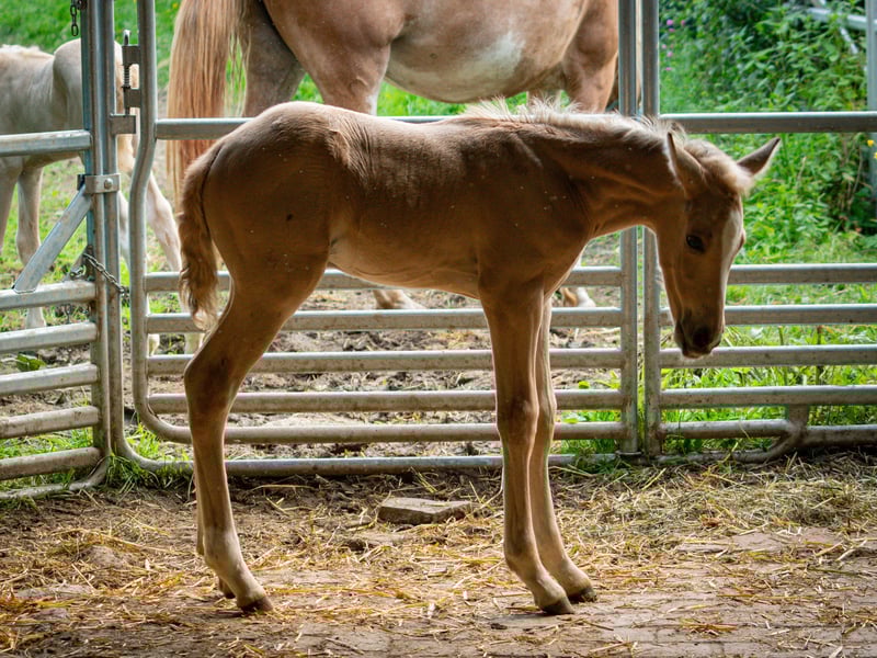 Orekh ist ein unkomplizierter, aufgeschlossener Jährling bester franko-maghrebischer Herkunft und mit überzeugendem Körperbau. Wir wünschen uns für diesen ansprechenden Jährling einen aktiven Reiter, der ihn in Zukunft - den Möglichkeiten entsprechend - auch gern sportlich orientiert auslasten möchte. Väterlicherseits wie mütterlicherseits sind distanz- und reit-erprobte Großeltern prägend. Auch Orekh zeigt mit seiner ruhigen Art und seinem Laufvermögen, wo er hingehört! Die Großväter Elam II (FRA) und Borak (MAR) , sowie die Mutterlinie der Karouia (TUN) stehen für Langlebigkeit, belegbare Eigenleistung und Charakterstärke. Bei Orekh steht also nicht nur die "Funktionalität" im Papier - er bietet sie tatsächlich ;) In der Aufzucht ist er stets gesund, aktiv und im mittleren Rang. Er weiß sich auch älteren und überlegenen Pferden gegenüber zu behaupten - ohne Eskalation. Da er schon recht groß gewachsen ist, empfehlen wir eine späte Kastration, was für einen möglichen Aufzuchtplatz berücksichtigt werden sollte. Seine 1,57 Prozentpunkte Araberanteil lassen sich möglicherweise noch am Kopfprofil und der Größe der Ohren erahnen - in allen anderen Belangen darf er sich stolz BERBER nennen. Wir möchten, dass er wegen seiner inneren Werte und seiner Mentalität geschätzt wird - auch wenn er in vielen äußerlichen Punkten eine Rarität in der Rasse darstellt! Auf dem letzten Foto ist sein Vater, ein Araber-Berber mit 3.13% OX Anteil zu sehen.
