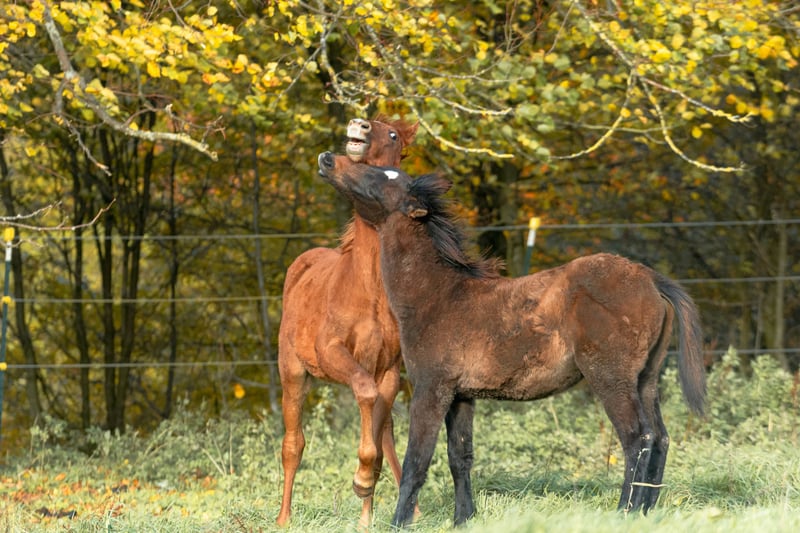 Notre petit roi cherche son partenaire deux-pieds créatif et passionné pour la vie ! Ce magnifique fils d’Ittu et de Haalim al Canton impressionne par son esprit vif et sa force intérieure. Sa mère, plutôt de rang élevé, lui transmet une confiance en lui particulière – il est rare de le voir inquiet ou craintif. Déjà avant son sevrage, il se distingue par son autonomie et sa grande compétence sociale. Cette particularité nécessite pour un futur foyer un propriétaire réfléchi et clair, ainsi qu’une bonne organisation du troupeau ! Certainement, Juba deviendra un cheval de rêve entre de bonnes mains – peut-être aussi pour un jeune cavalier sous une guidance et une supervision appropriées. Cependant, son intérieur typiquement berbère représente aussi un défi. Nous souhaitons donc pour cet élégant mais solide étalon un foyer stable avec de bonnes options d’élevage – si besoin, Juba peut également être intégré dans un élevage d’étalons existant près de la frontière germano-belge. Un cavalier actif et sportif trouvera en Juba un cheval qui a peu de limites physiques. Toutefois, son tempérament lui confère également un rythme soutenu et une joie de mouvement, caractéristiques plus typiques des chevaux ibériques. À l’avenir, il devrait être emmené dans des défis et des tâches avant même le débourrage, afin qu’il puisse suffisamment mûrir et grandir physiquement tout en développant son appétit pour la nouveauté. Il apparaît que ces lignées sont mentalement plus précoces et qu’elles rattrapent leur retard sur le plan physique. Nous recherchons moins un connaisseur absolu de la race qu’un cavalier engagé et passionné, qui voit la dynamique et l’intelligence comme un cadeau, et qui dispose de suffisamment de temps pour un futur partenaire à hauteur d’homme.