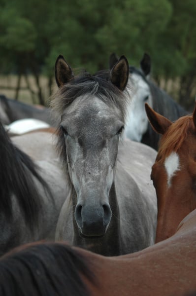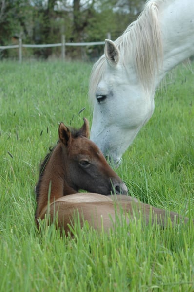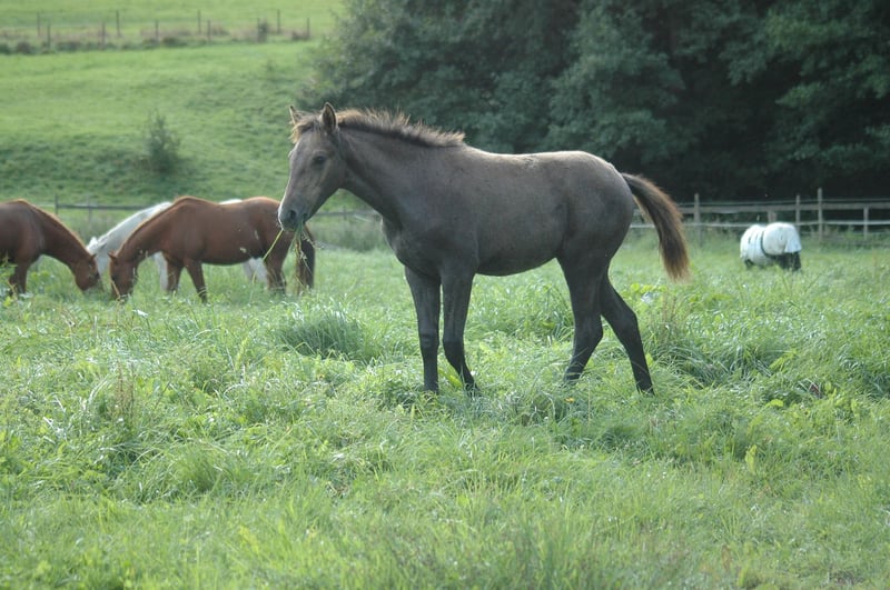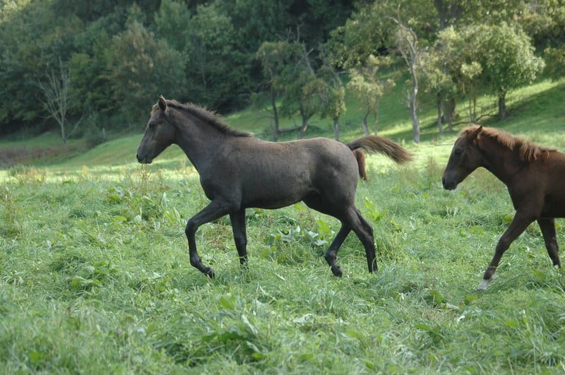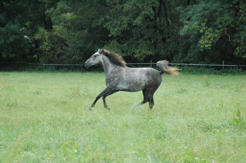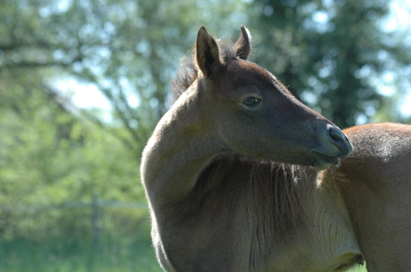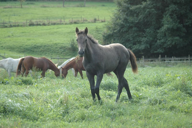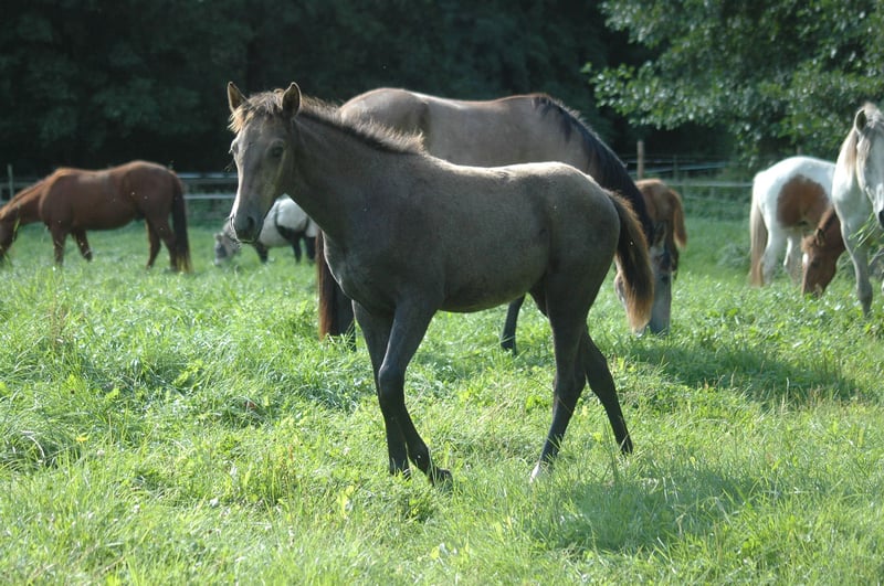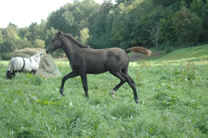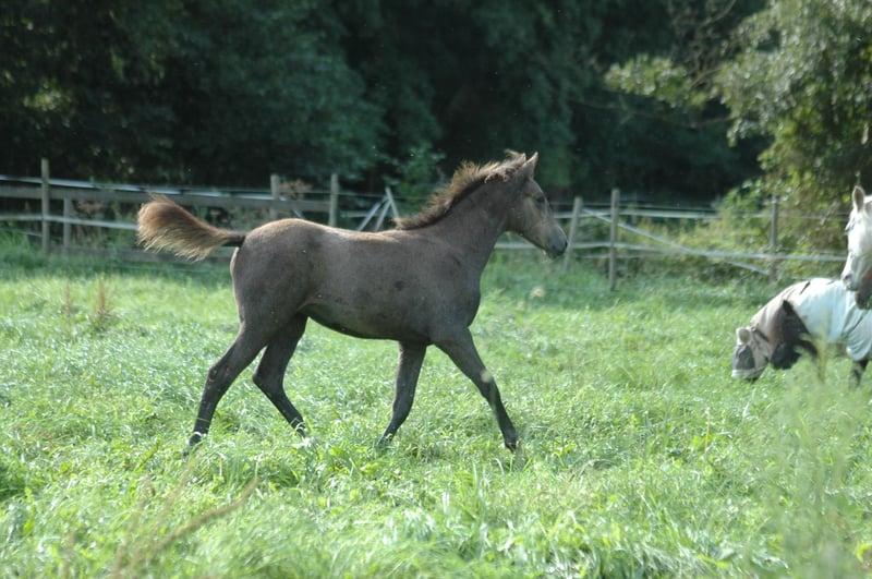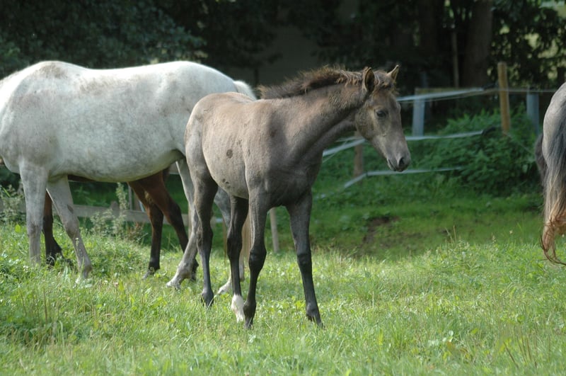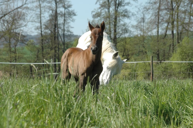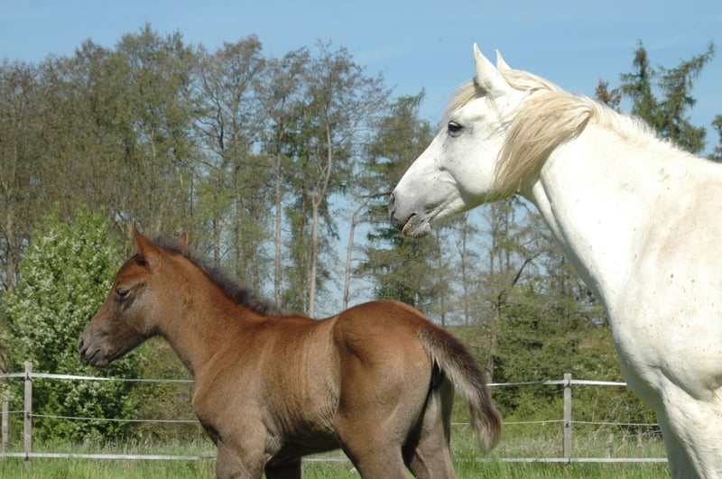 Berberstute Nisha al Aatik Vater: Hajri (TN) von Nadhif aus der Teslia Mutter: Elijah de Dienne (FR) von Pharid des Balmes aus der Nate des Balmes Sie ist am 28. April 2023 als Braune geboren und wird Schimmel werden. Nisha ist eine nervenstarke Berberstute, dabei sensibel und sehr menschenbezogen. Sie ist temperamentvoll, selbstständig für ihr Alter und verspricht groß zu werden. Sie ist sehr typvoll, mit einem grazilen Gesicht und langen Beinen. Nisha ist sehr anhänglich. Sie braucht einen Menschen, der ihr aufgrund ihrer hohen Intelligenz Abwechslung bieten kann. Ich kann sie mir sehr gut in der Reitkunst oder der Working Equitation vorstellen. Sie hat die hohe Sensibilität, die edle Erscheinung und Intelligenz ihrer Mutter geerbt, von Hajri (ein in Tunesien geborener und gekörter, brauner Deckhengst) hat sie das stabile Fundament, die ruhige, sanfte Art und eine von dieser Seite einzigartige Abstammung in Deutschland, was sie auch für die Zucht interessant macht. Nisha wird ein geschätztes Endstockmaß von ca. 1,56 m haben. Sie lebt mit ihrer Mutter und den Geschwistern in unserer großen, gemischtaltrigen Herde. Nisha wurde regelmäßig entwurmt und geimpft. Eine bedarfsgerechte, mineralreiche Fütterung gehört bei uns selbstverständlich dazu. Sie wurde von klein auf im Hufegeben und Führen geschult. Neben Nisha warten noch einige Fohlen und Jungpferde auf ihren Herzensmenschen. Wir freuen uns über Anfragen, gerne auch per WhatsApp 015781959559 Mehr Infos auf facebook oder berber-al-aatik.de