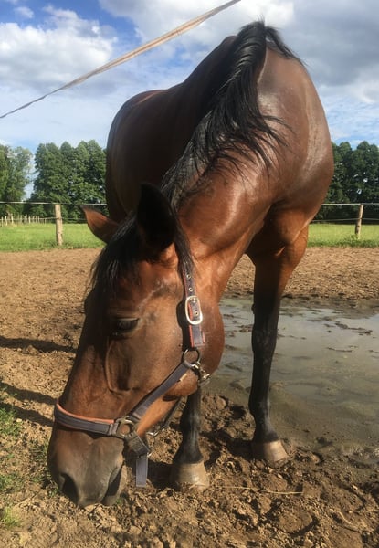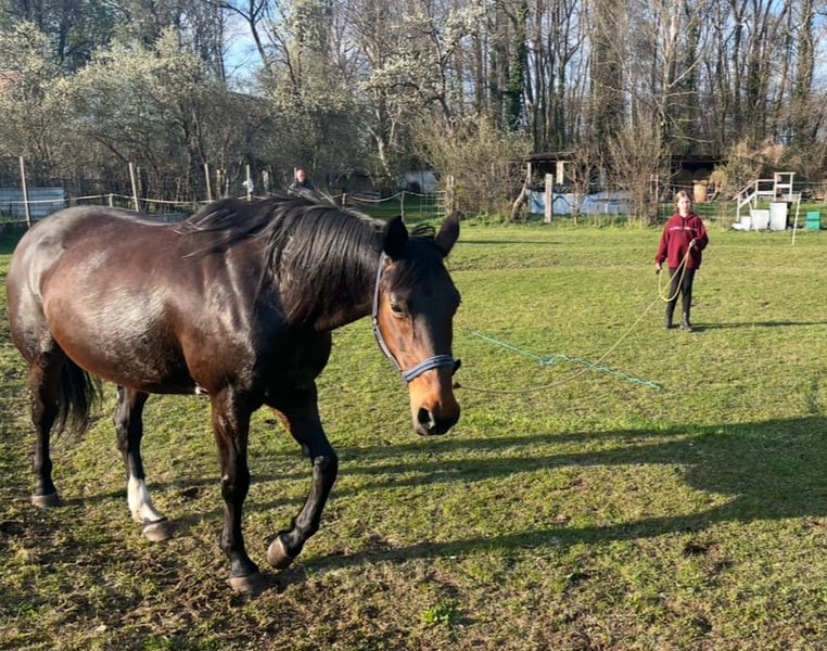 Ich suche für meine Stute Samira ein neues zu Hause. Sie ist eine Warmblutstute mit vollen Papieren,Sie ist braun, 15 Jahre alt und hat ein Stockmass von 1,69 m. Sie wurde die Jahre vorher als Freizeitpferd geritten, springt sehr gerne und lässt sich auch dressurmäsdig gut reiten. Im Umgang ist sie brav, unter dem Sattel jedoch sensibel und fein an der Hand- eher ein Pferd für gefühlvolle Reiter. Sie wurde jetzt ca. 2 Jahre nicht mehr gearbeitet, daher verkaufe ich sie ausschließlich als im Moment nicht geritten oder als Zuchtstute. Daher auch kein Probereiten möglich! Mit Zeit und Geduld ist sie in Zukunft auch wieder reitbar. Im Moment hat sie leider nur bei uns auf der Koppel gestanden, ab und an wurde in letzter Zeit noch Bodenarbeit mit ihr gemacht. Sie steht bei uns im Sommer komplett draußen, im Winter im Stall mit Koppelgang tagsüber. Sie ist Schmiede- und verladefromm. Solange sie bei mir stand, war sie noch nie krank! Sie hat sehr gute Papiere. Hatte auch schon ein Fohlen. Platz vor Preis Bei weiteren Fragen einfach schreiben, gerne auch per WhatsApp 0176 43929338 Ein Video vom reiten ist verfügbar