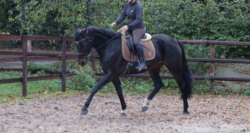 Benetton Dream × Fiedertanz 1,60 m – leichtes, sportliches Modell – ideal für kleinere Reiter / Umsteiger Zum Verkauf steht eine charmante, aufmerksame und sehr leichtrittige Stute aus hervorragender Dressurabstammung. Sie ist ein elegantes, zierliches Pferd, das besonders gut zu kleineren oder leichteren Reitern passt und auch für ambitionierte Jugendliche oder Umsteiger bestens geeignet ist. ⭐ Charakter & Rittigkeit • Ausgeglichen, unkompliziert und stets freundlich • Mutig und unerschrocken – wird regelmäßig an der Hauptstraße geritten, absolut unbeeindruckt beim Gelassenheitstraining • Kennt Kinder, Hunde, Landmaschinen und fremde Umgebung • Immer artig – auch auswärts gelassen und zuverlässig • Barhuf und einfach im Handling ⭐ Ausbildung & Können • Aktuell auf A-Niveau • Sehr gute Grundgangarten • Wurde überwiegend von Jugendlichen geritten → fein zu reiten, gut regulierbar • Lehrgangserfahrung vorhanden • Arbeitet sicher an der Longe und kennt Bodenarbeit/biotensegrales Training Die Stute wird von einem Amateur geritten und bringt das Potenzial für eine solide sportliche Karriere im Dressursport mit. Gleichzeitig ist sie aufgrund ihres Wesens ein ideales Pferd für ambitionierte Freizeitreiter, die Wert auf ein verlässliches, freundliches und motiviertes Pferd legen. Ein tolles Allround-Paket für Reiter, die ein leichtes, feines Dressurpferd mit Perspektive suchen.