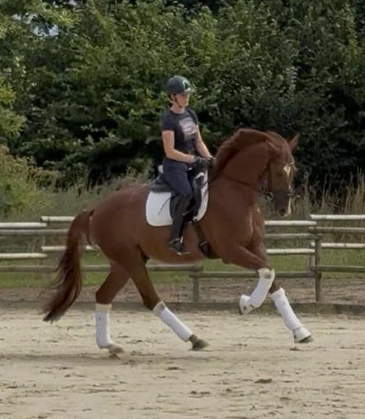 4-year-old gelding by VaBene x Quando Quando This top young horse is recommended for higher tasks with the right go. Character-wise impeccable with a lot of potential and striking presence. From the mother, there are already 2 successful S-level placed brothers: - Feiner Fritzz, S*** - Dandelion 41, S** X-rays from 2024, including back and neck, are available and show no findings. We look forward to your inquiries.